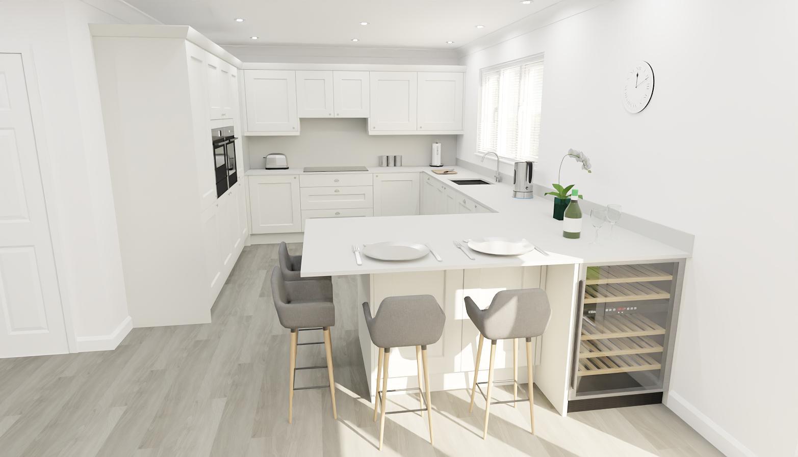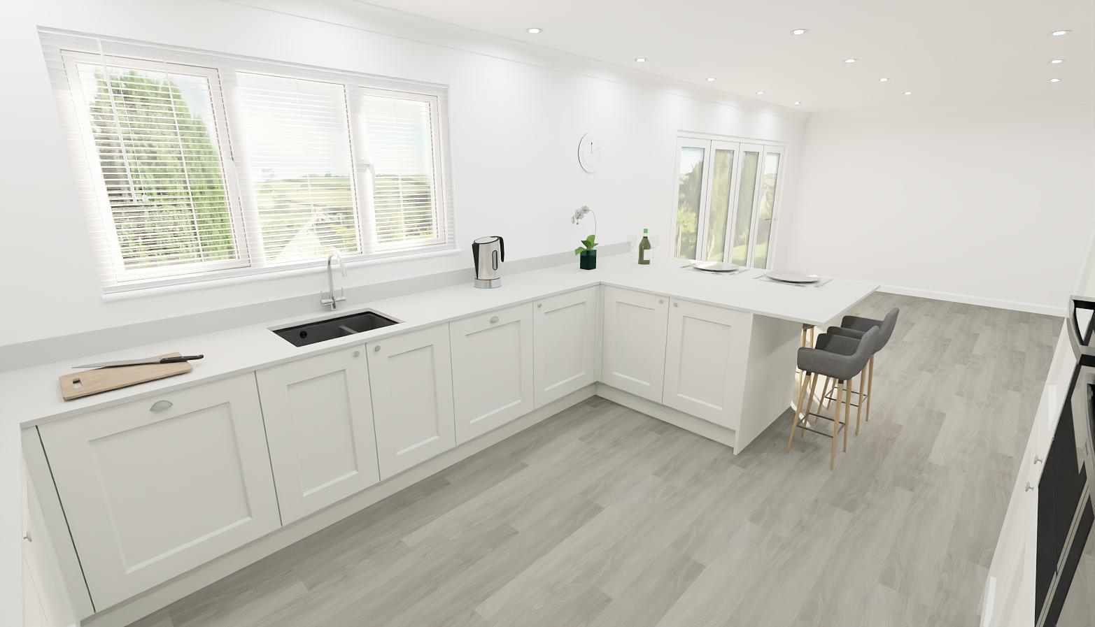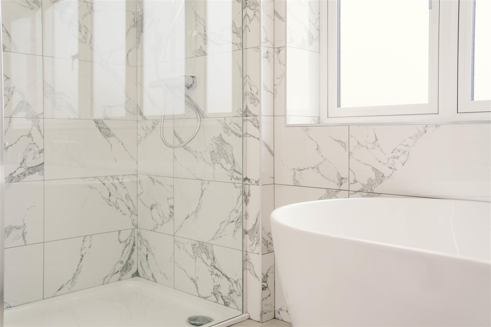 - Modern shaker kitchen with quartz worktops, Neff integrated appliances and bi-fold doors into the rear garden