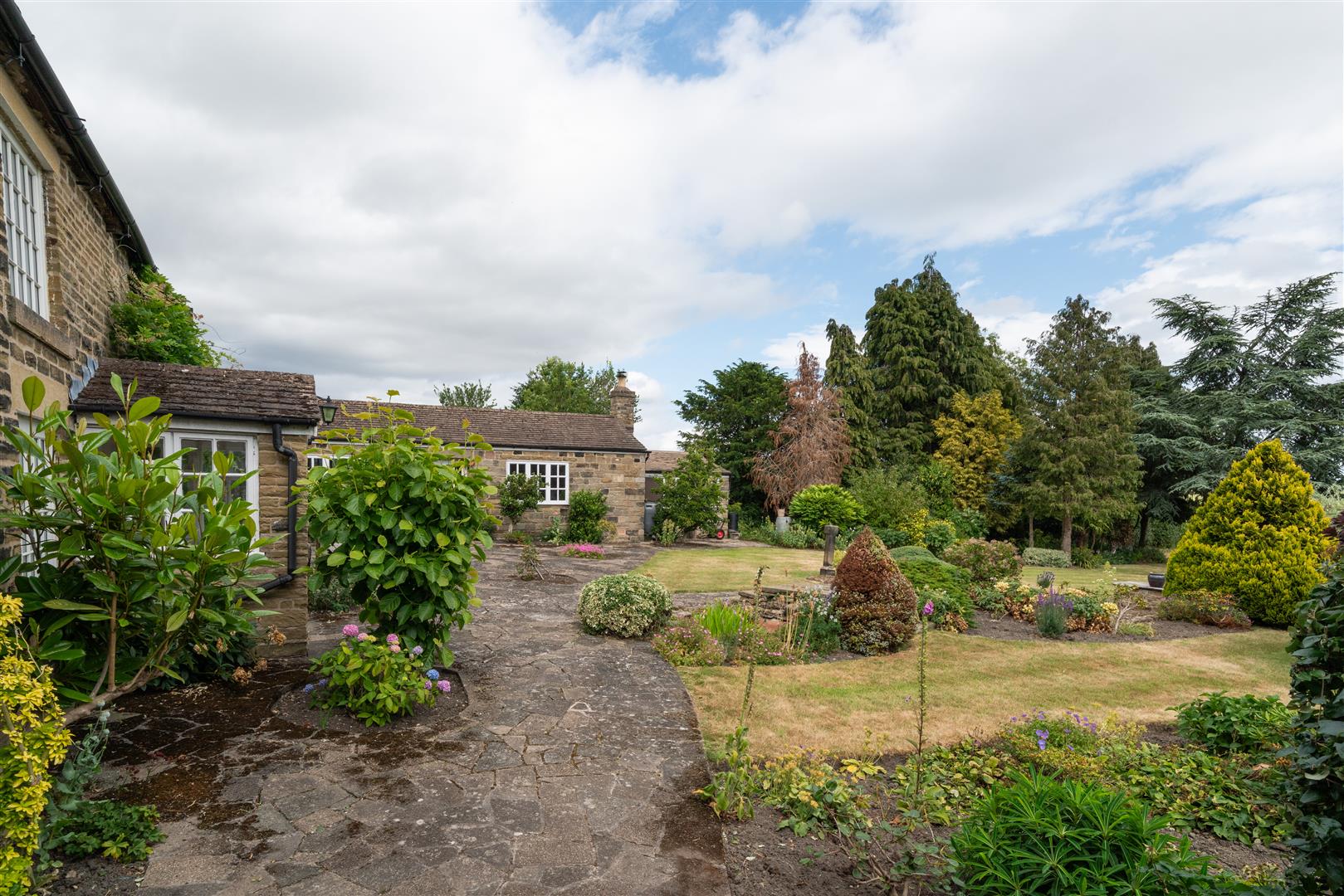 - Stone flagged driveway and adjoining garages providing ample parking