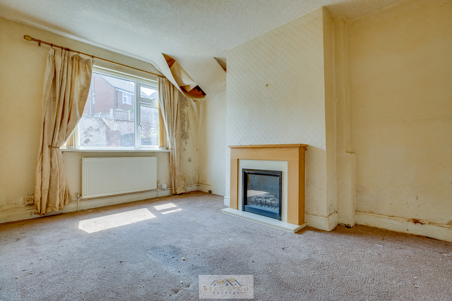 In brief the property entrance hallway leading to front-facing lounge – a bright and cosy space ready for refurbishment.