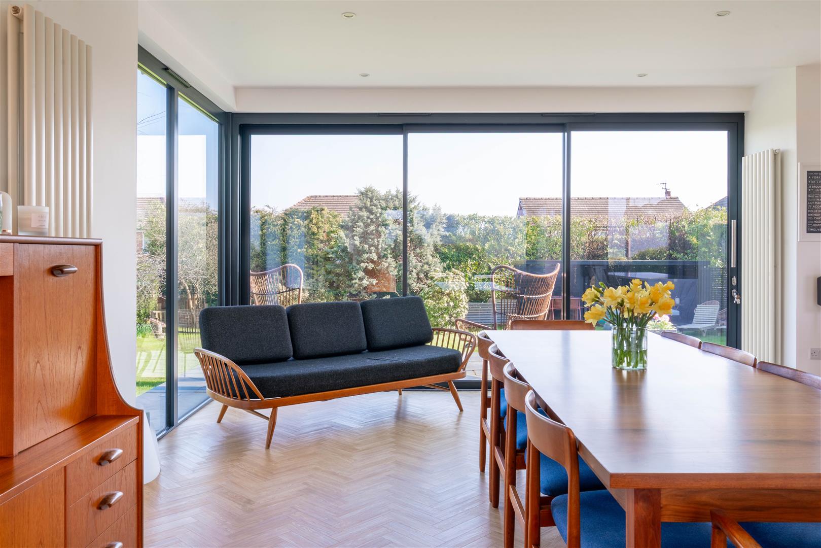 - Social open plan living and dining space leading off the kitchen with expansive glazing filling the home with natural light