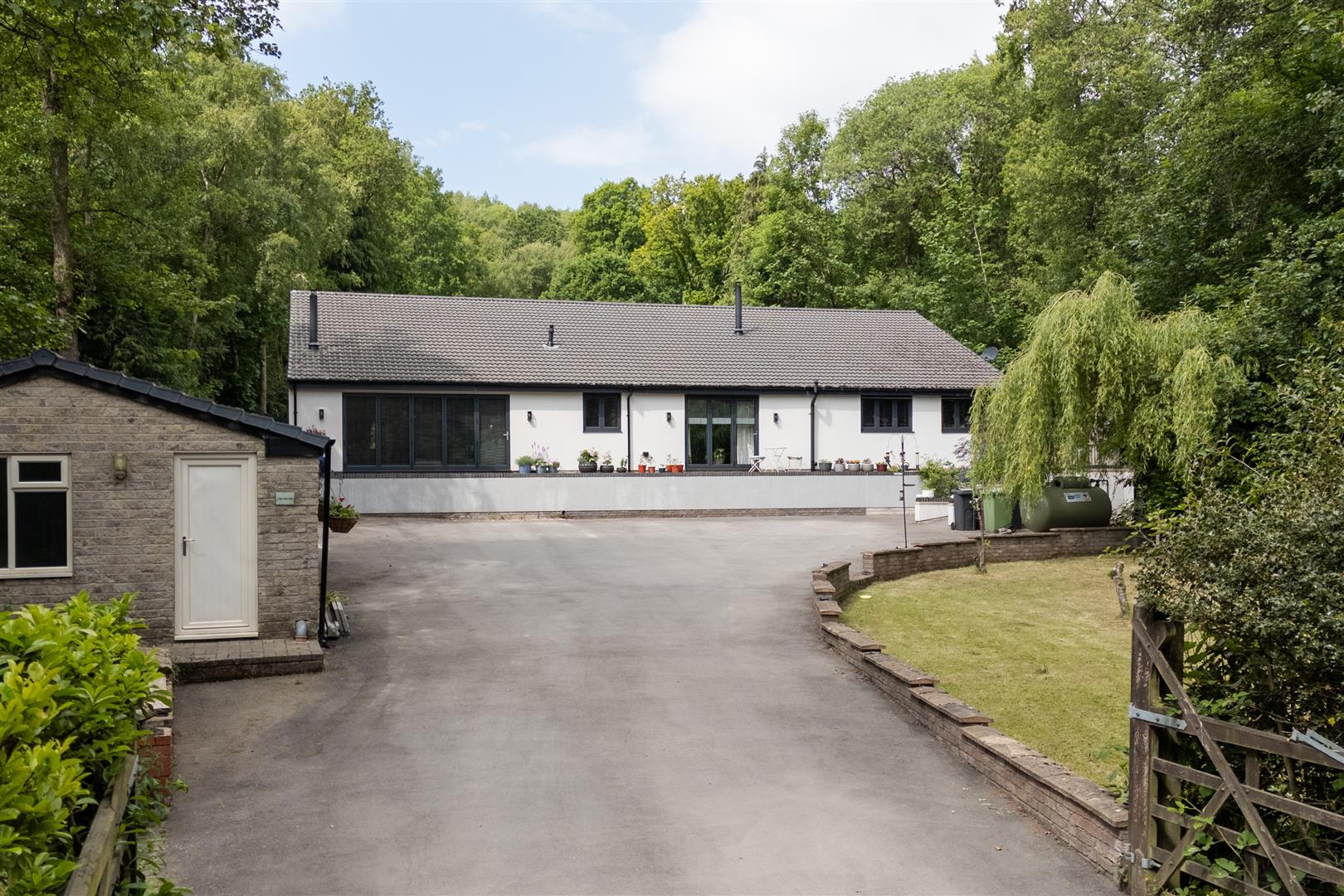 - Large plot with huge driveway and landscaped rear garden with patio, lawns and woodland