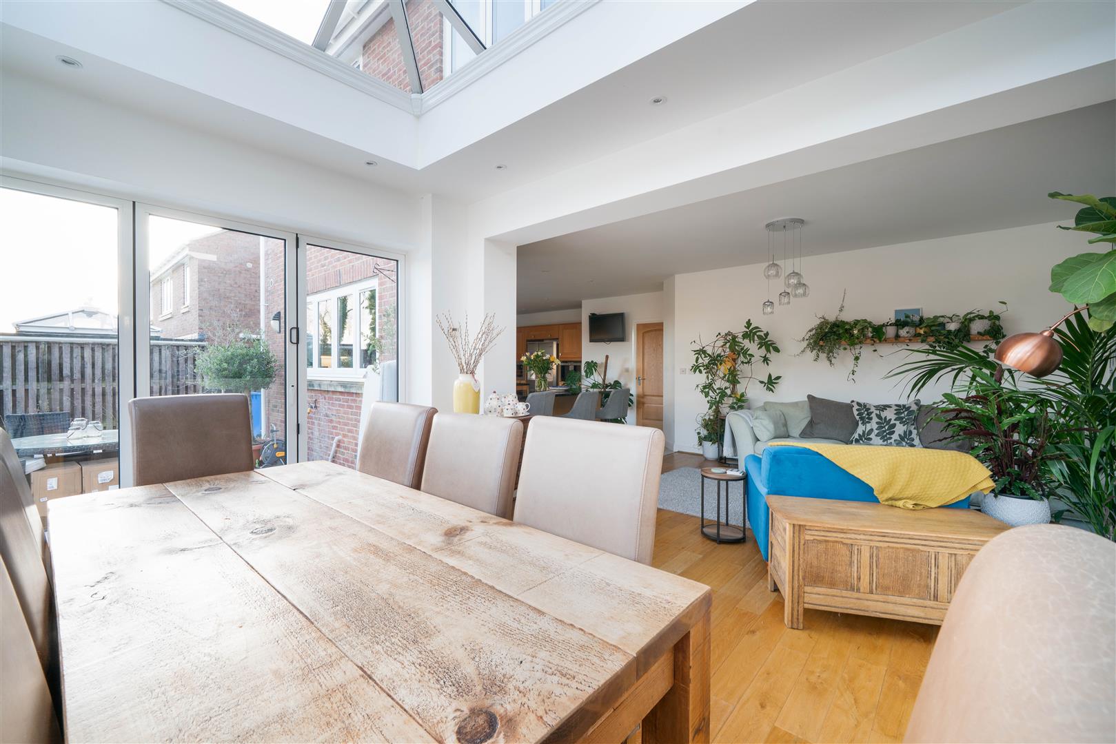 - Social open plan living and dining space leading off the kitchen with sky-light lantern and bi-folds doors into the garden, plus separate family lounge