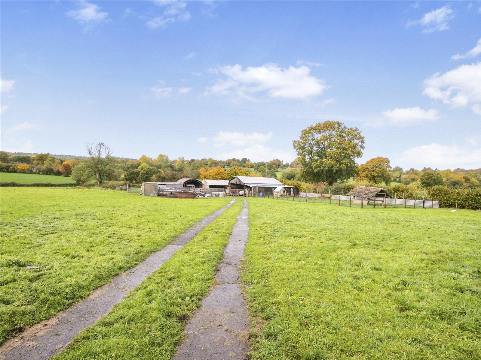 A post-and-rail fence separates the garden from the adjoining land, which comprises of pasture and extends to approximately 16 acres. It is divided into two fields. A track leads to the range of outbuildings, which includes steel framed barns with potenital for conversion subject to planning permission, workshops, and a useful yard which is ideal for equestrian, smallholding, or agricultural use.