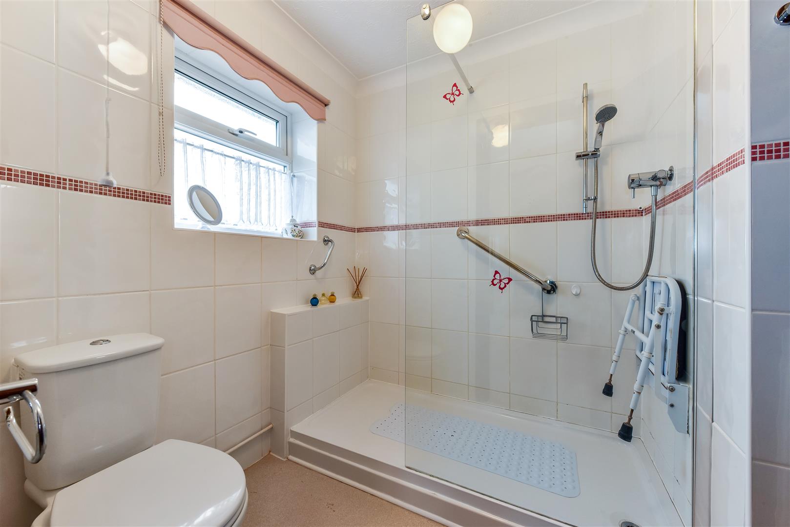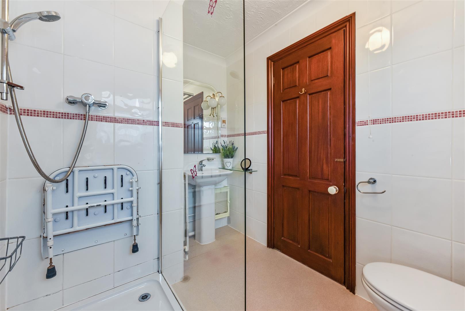 En-Suite Shower Room: Fully tiled walls and flooring. Walk in full width shower with glass splash panel and mains shower unit. Pedestal wash basin and W.C.