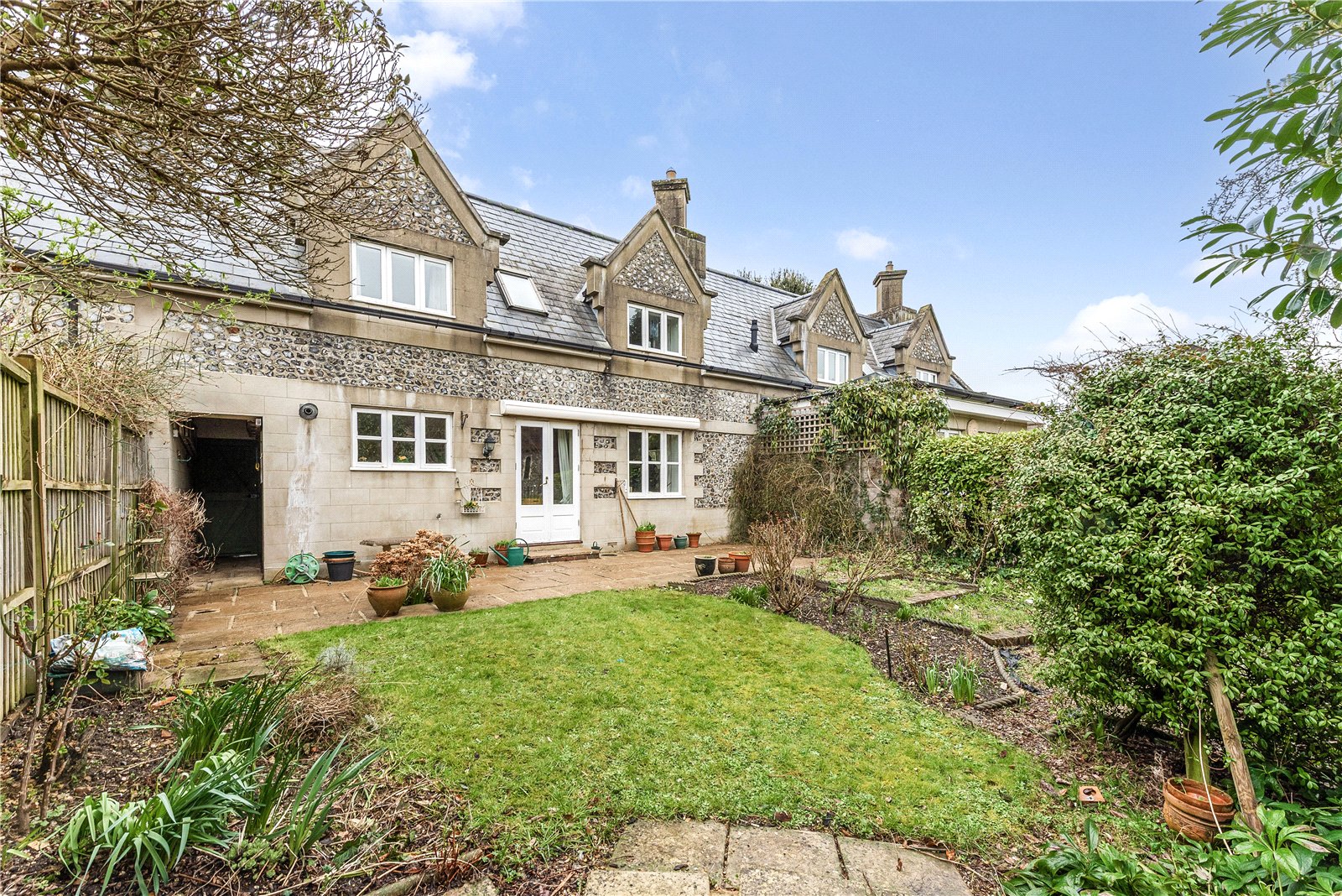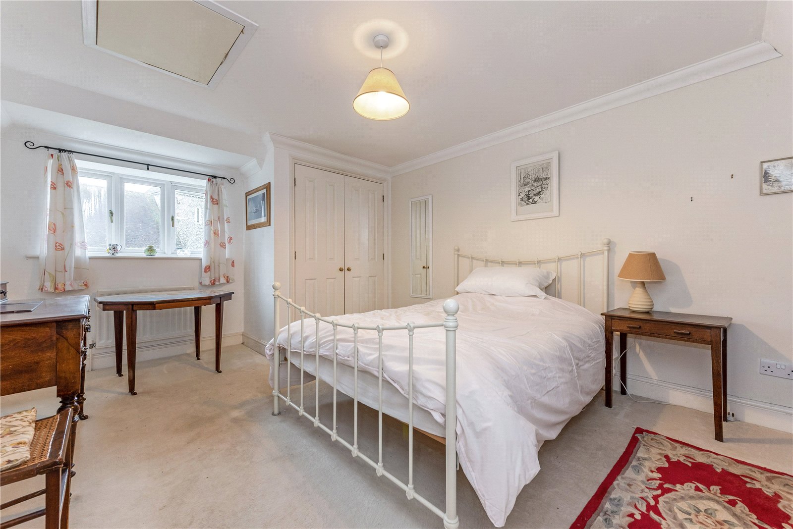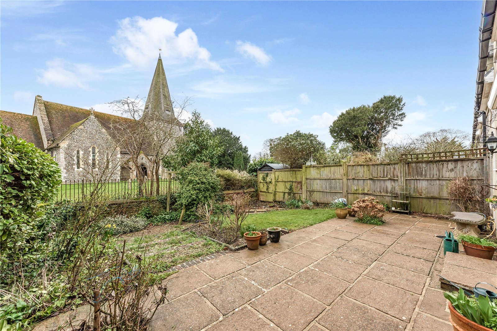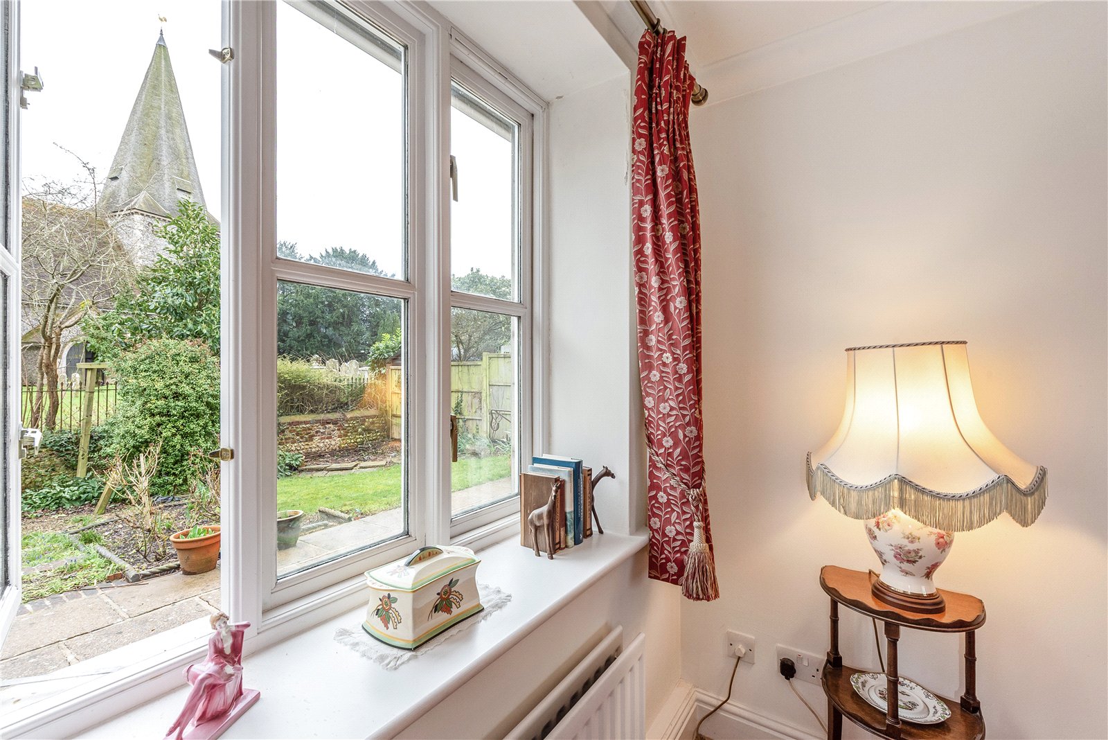 The rear garden offers a stone paved terrace, lawn and well stocked flower and shrub beds. The garden is enclosed and features a low level brick and flint wall topped with wrought iron railings, allowing a picturesque view of St Andrew’s Church.
