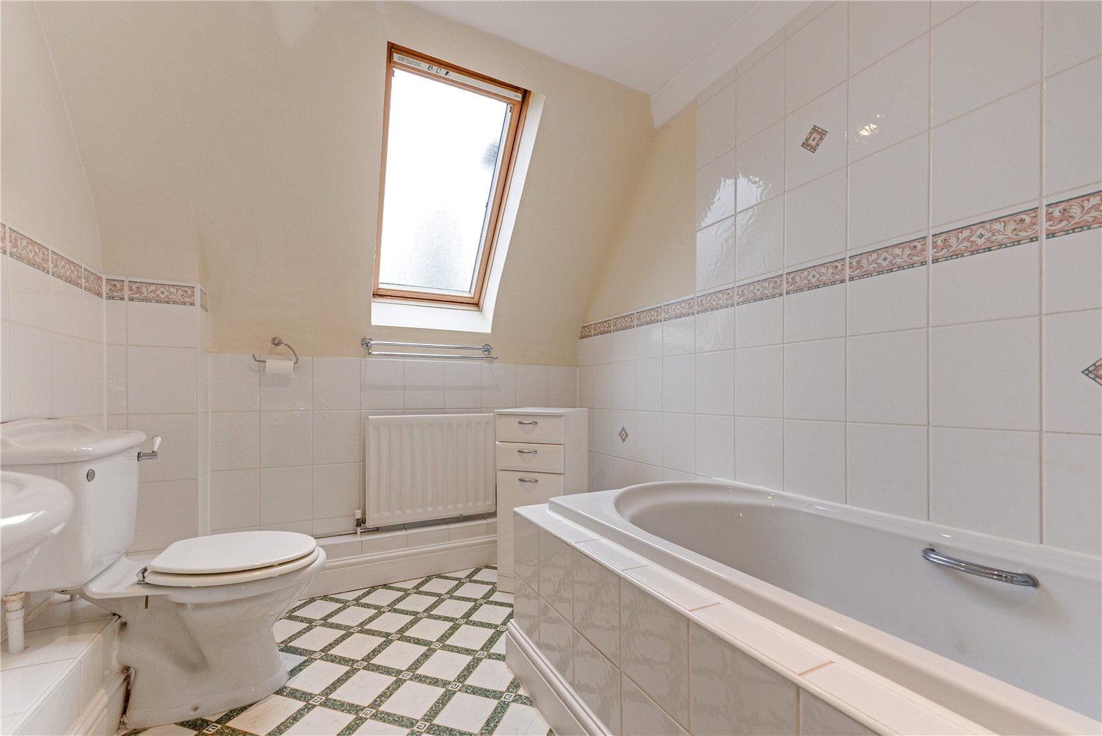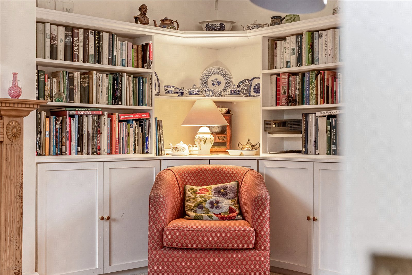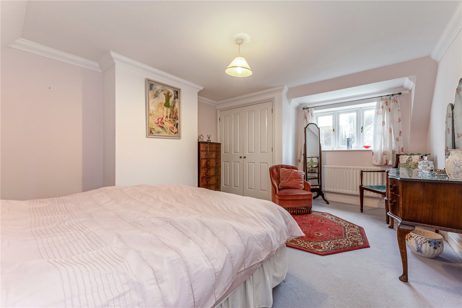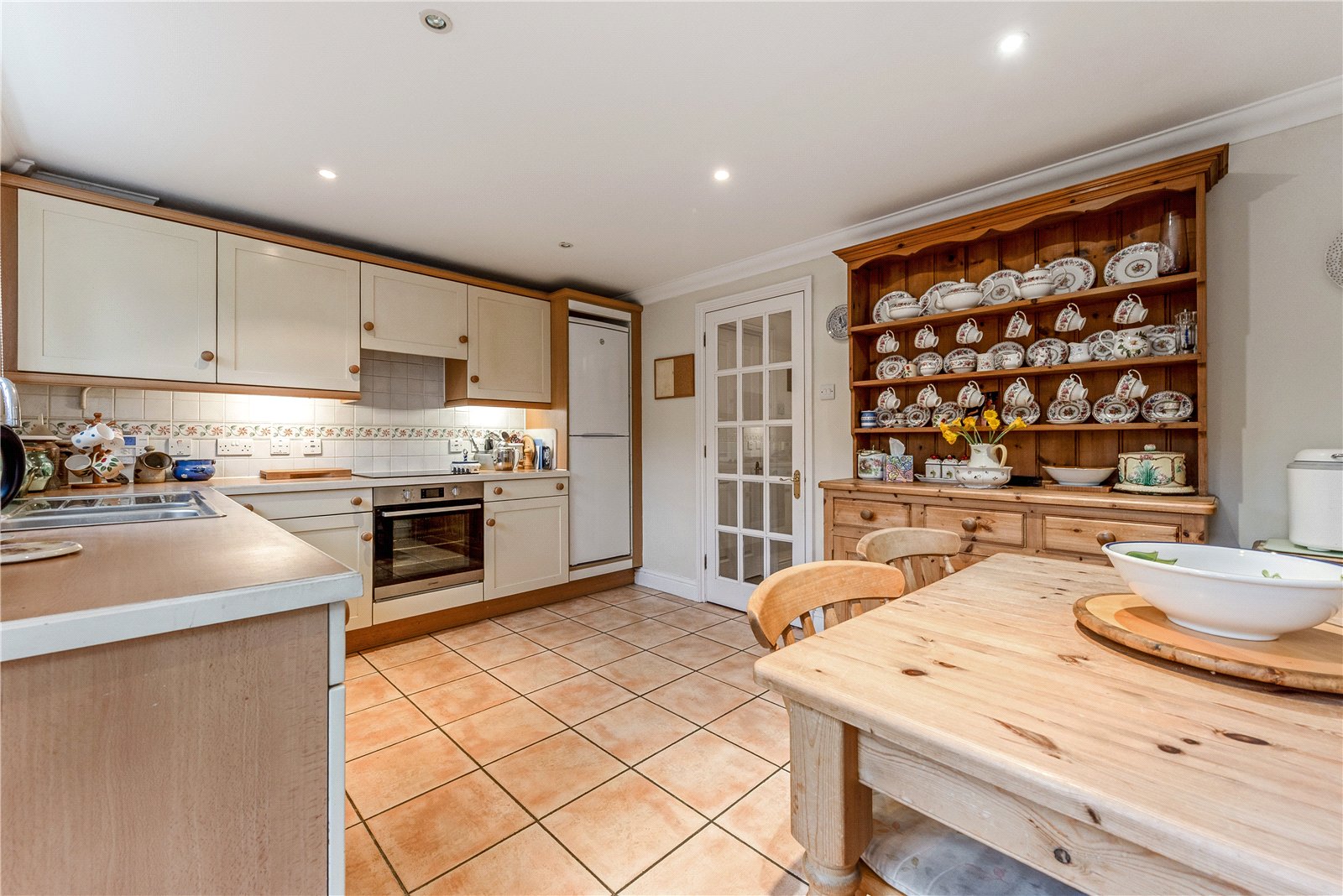 The rear garden offers a stone paved terrace, lawn and well stocked flower and shrub beds. The garden is enclosed and features a low level brick and flint wall topped with wrought iron railings, allowing a picturesque view of St Andrew’s Church.
