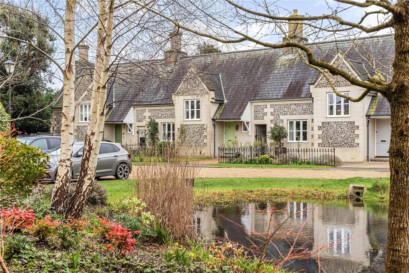 Externally, the property features a neat lawned front garden enclosed by wrought iron fencing, together with a gravel driveway. There is an outlook across communal grounds with mature trees and a picturesque pond, plus an additional area for visitor parking.