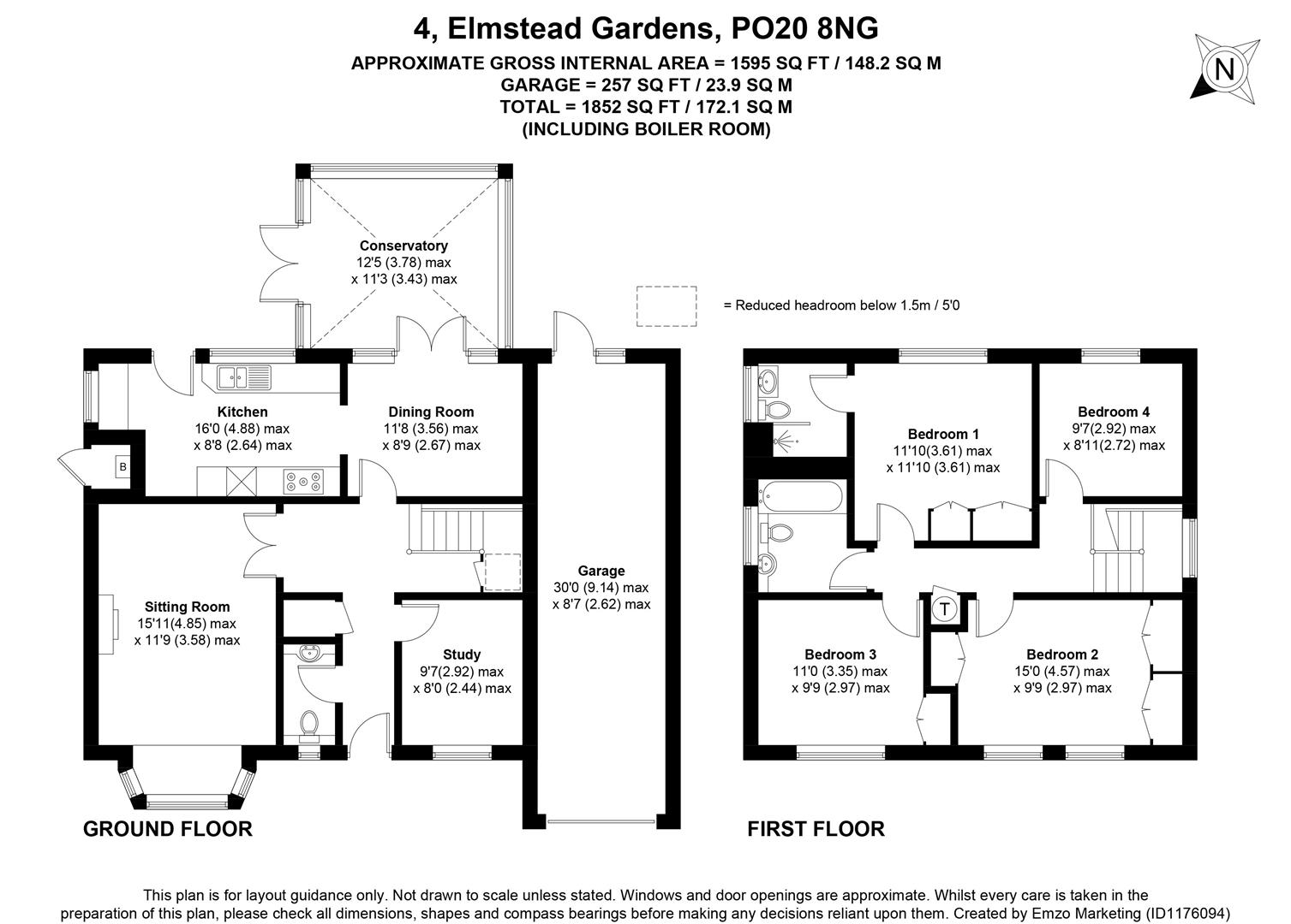 Bedroom 4/Office: Window overlooking the rear garden, radiator.