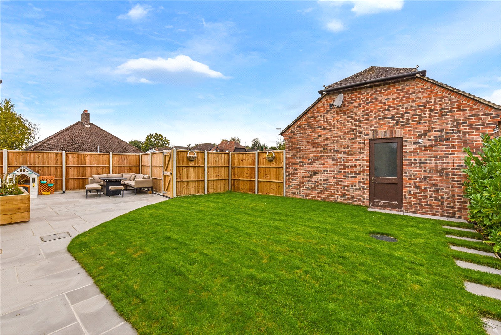 The Croft enjoys a corner position and, while the garden wraps around the house, the majority lies to the rear, where a sandstone patio offers space for entertaining, alongside an expanse of law, all enclosed by panel fencing. A garage is located to the rear with a garden door and there is off-street parking for 2–3 vehicles.