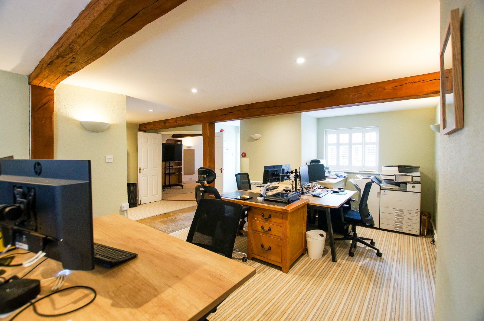 The first floor provides further office accommodation, with ancillary kitchen and w/c facilities. The three separate rooms on the first floor have been let on licence agreements. Further details on the current level of income available upon request.