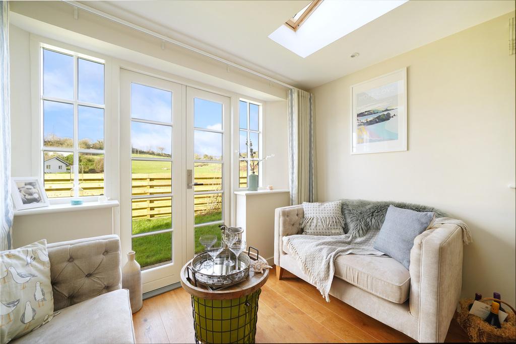 - Day room with patio doors opening to the garden