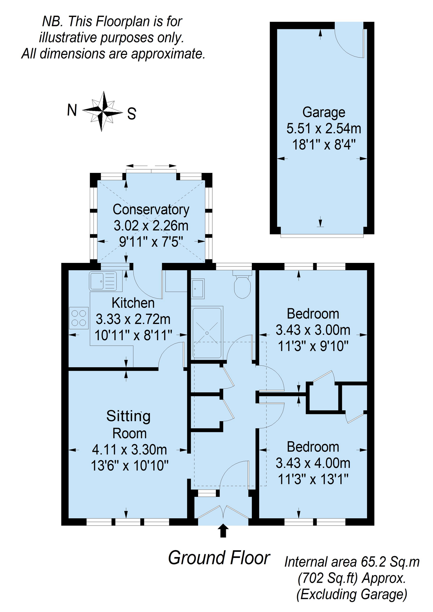 This delightful property comprises entrance porch, hall with built-in storage, 2 double bedrooms, both with built-in storage, a fully tiled modern shower room, sitting room with feature fireplace and lovely views to the front garden, kitchen with fitted floor and wall units, integrated appliances and door to the triple aspect conservatory,