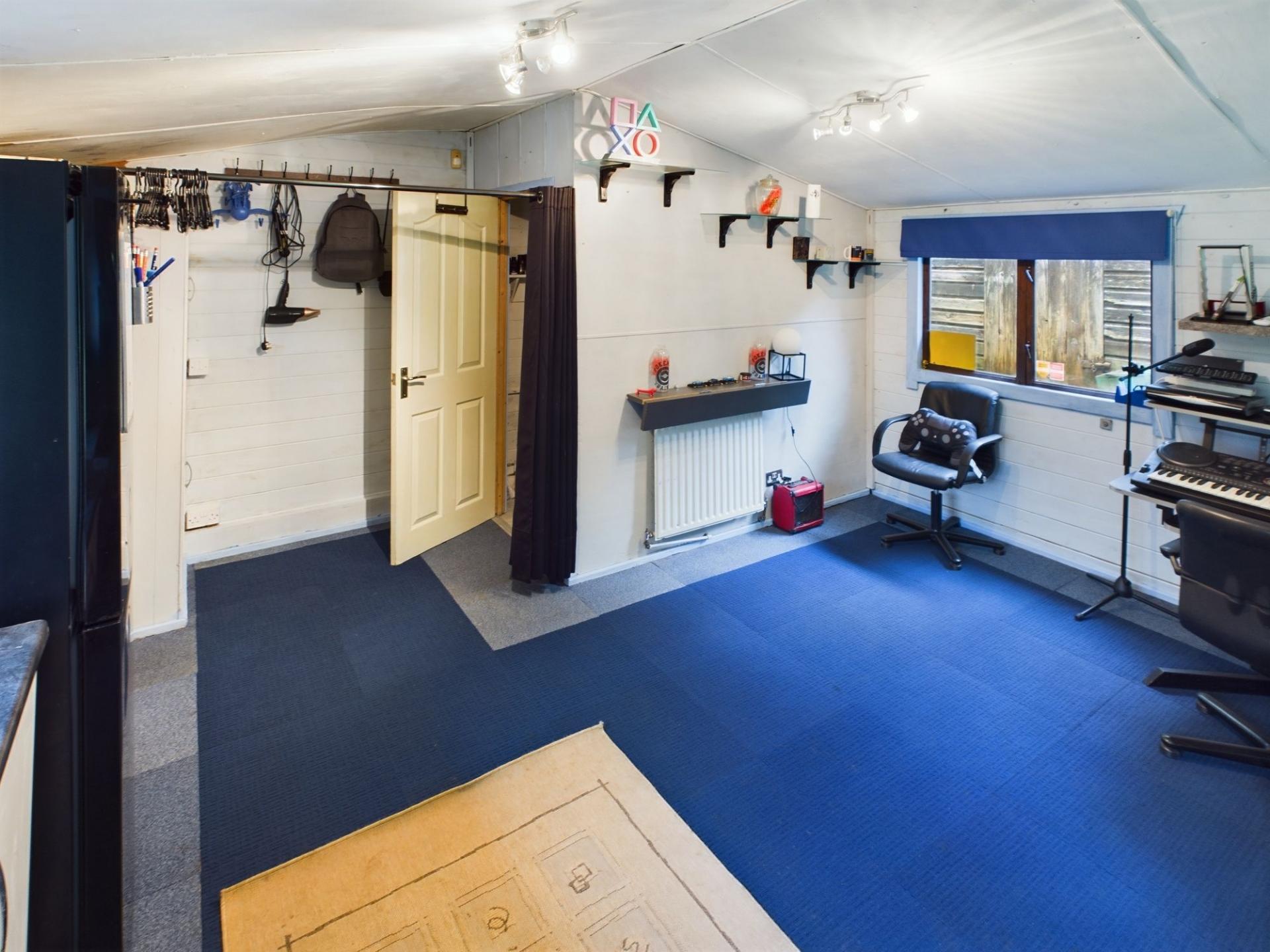 In addition to the four bath/shower rooms in the main house, the studio in the garden also has a shower room and work surface space - possibly providing an additional income. The games room also has a WC.