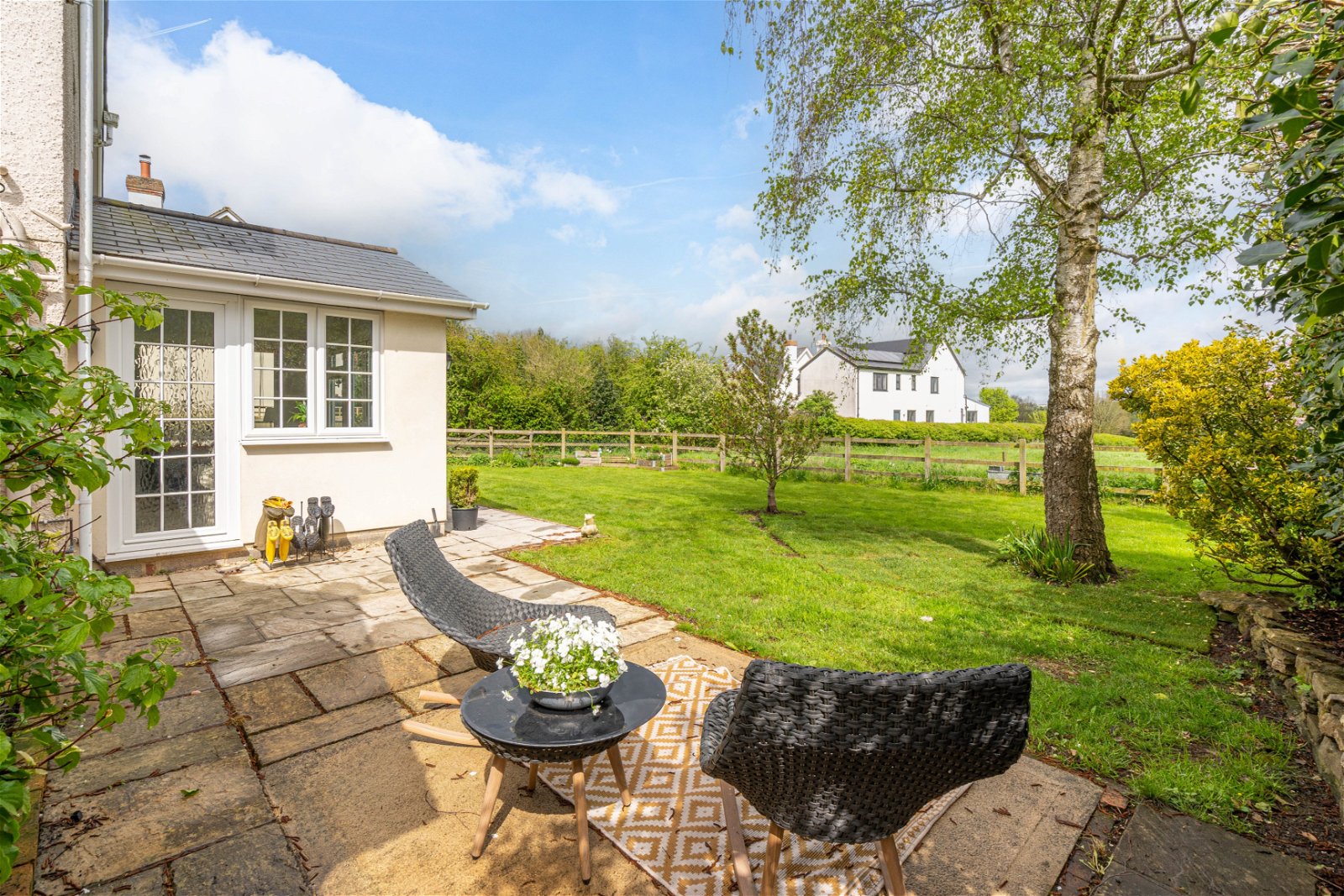 - Garden backing onto open fields