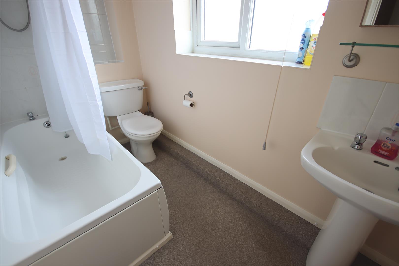 Bathroom - Obscure uPVC double glazed window to front. Panelled bath with shower over and tiling to principal areas. Pedestal wash basin with tiled splashback. Close coupled WC. Wall mounted Dimplex fan heater.
