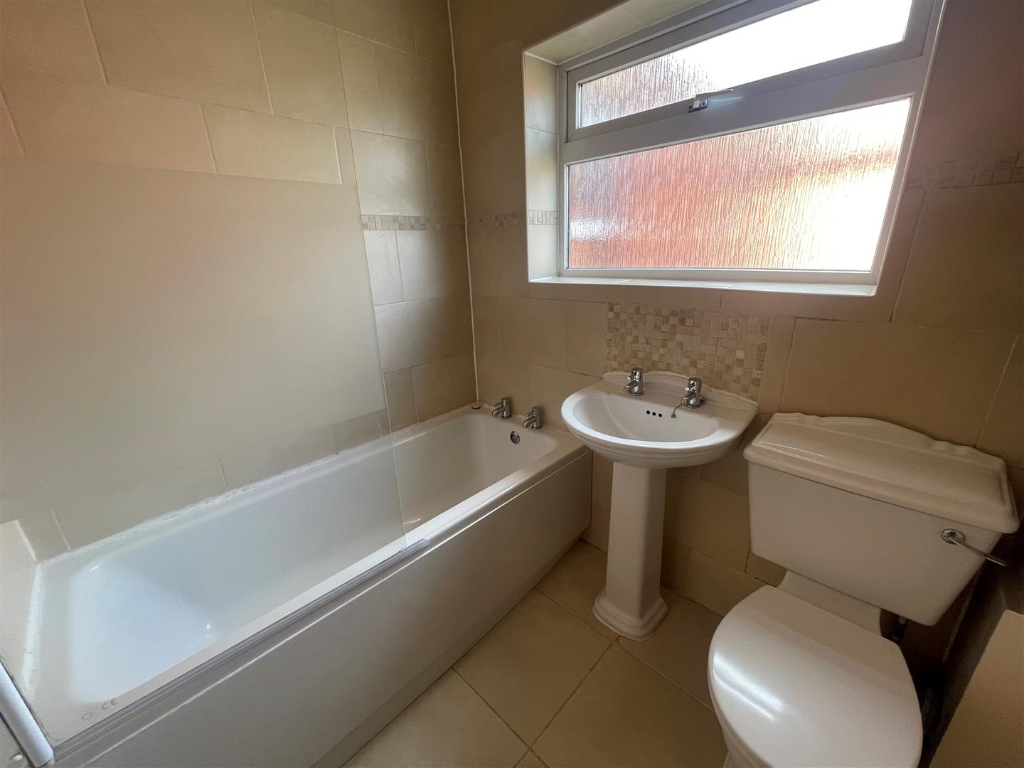 Bathroom - Obscured double glazed window to side. White suite comprising of panelled bath with shower over. Glass shower screen. Pedestal wash basin and close coupled WC. Tiled to principal areas. Tiled flooring.