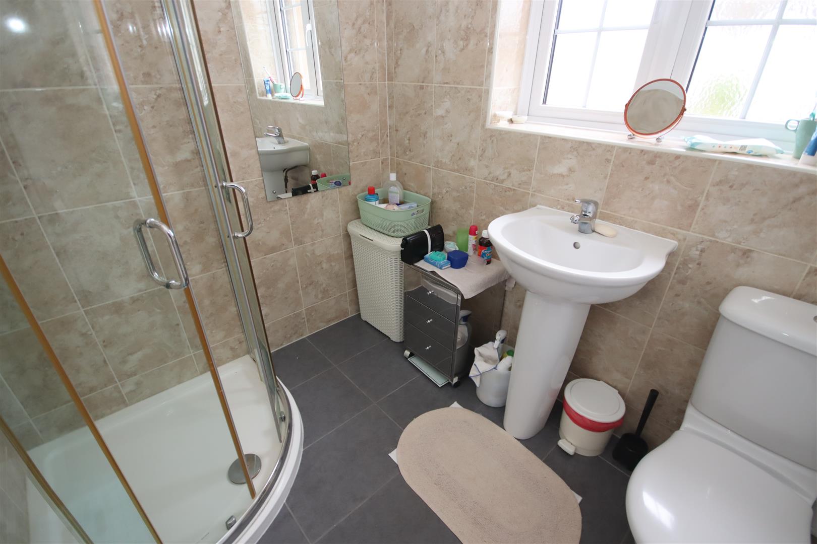 Shower Room - 7'0" x 5'10" - Obscure double glazed window to front. White suite comprising corner shower cubicle with Triton thermostatic power shower. Pedestal wash basin with chrome mixer tap. Close coupled WC. Chrome ladder radiator . Tiled floor. Recessed spotlights. Fully tiled to three walls.