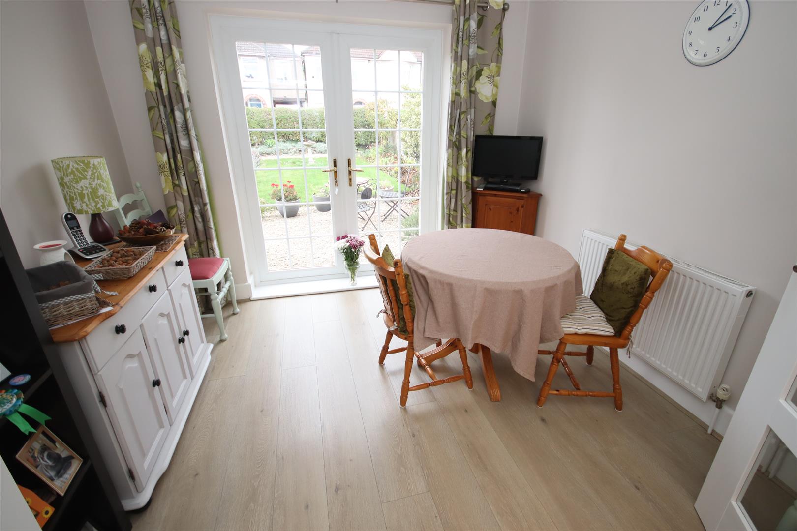 Dining Room - 10'4" x 9'11" - Multi pane double glazed french doors to front. Radiator. Wood laminate flooring. Coving