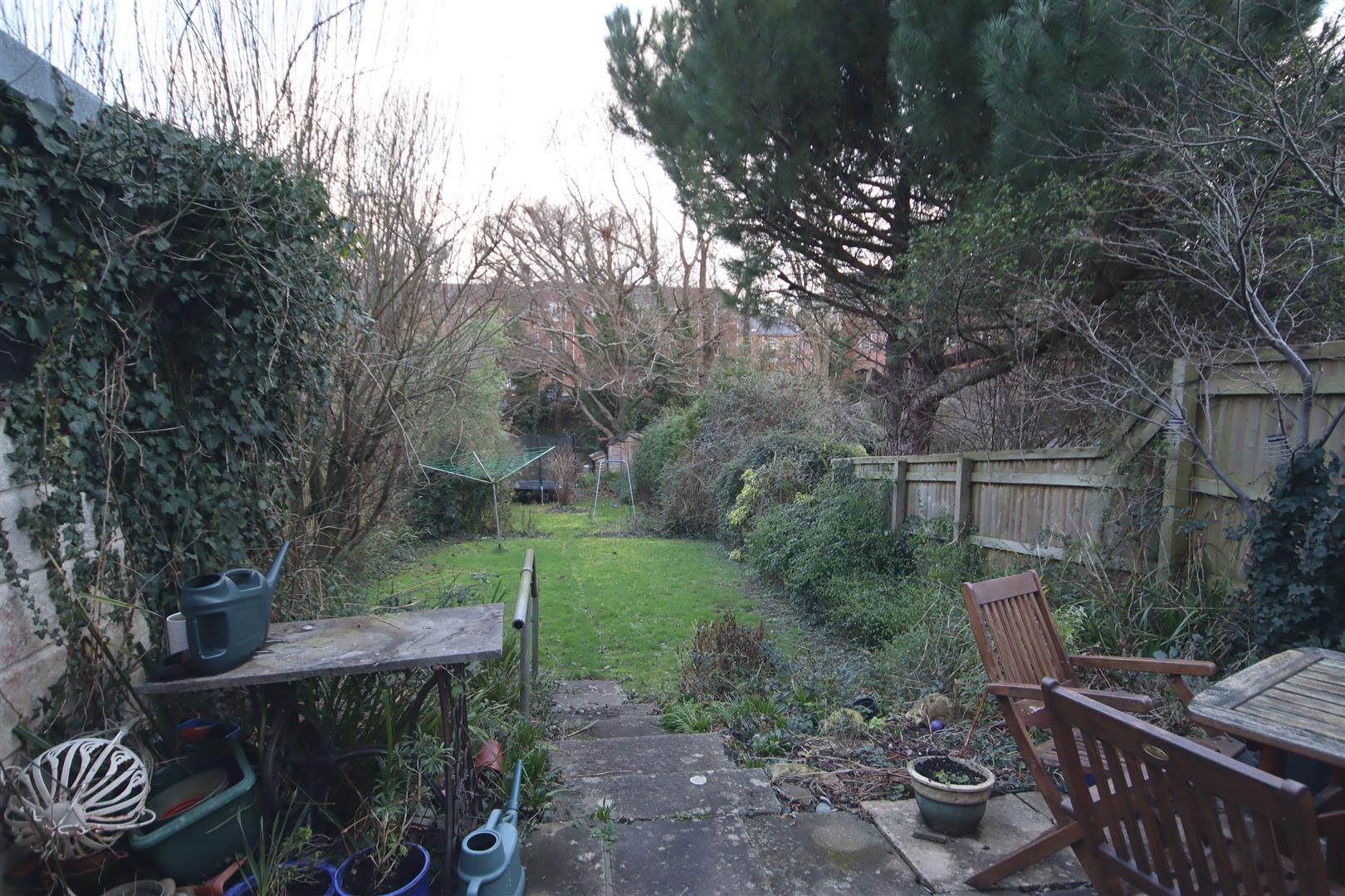 Rear Garden - Large mature garden approximately 120ft in length. Patio area with steps down to lawn area beyond, mature trees and shrubs. Outside tap. Gated side access