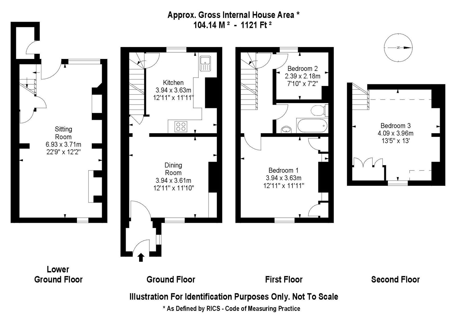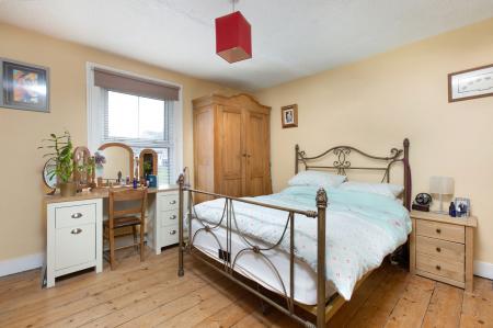 As you enter the property you are greeted by a useful brick-built porch area which provides the perfect space for jackets and muddy boots whilst also creating a divide to the internal accommodation. From the porch a second doorway leads into the formal dining room. Measuring 12’11” x 11’10”, there is plenty of space for a formal dining table or alternatively would make a cosey snug or second reception room. The kitchen is also positioned on the ground floor and has an elevated view over the long rear garden. The kitchen comprises of modern, fully fitted wall and base units and space for a host of freestanding appliances. A staircase from the kitchen provides access to bedrooms on the first floor. Bedroom one is positioned overlooking the front aspect and measures 12’11” x 11’11”. Plenty of in-built storage is present either side of the fireplace, whilst stripped wooden floorboards add to the period charm and character. A second bedroom, currently used as a single bedroom, would make a great children’s room or study / work from office, if required. To complete the first floor is the family bathroom comprising of a white suite with bath and overhead shower. A further staircase leads to the second floor where there is another double room forming part of a loft conversion. More storage is present in the eves and a Dorma window provides natural light. Moving downstairs to the lower garden level is the properties hidden and spacious sitting room. Measuring 22’9” x 12’2”, the sitting room encompasses the entire footprint of the property and makes for a cosey retreat throughout the year courtesy of Rayburn and a door out to the west-facing garden and decked area to the rear.