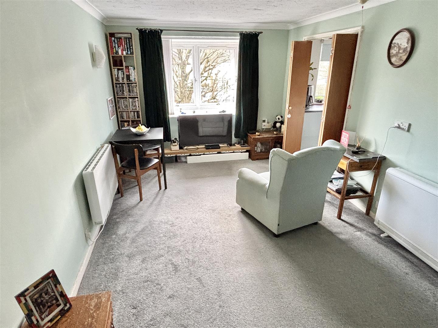 Entrance Hall - Night storage heater. Telephone entry system. Walk-in storage cupboard housing hot water tank. Doors to: