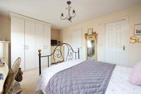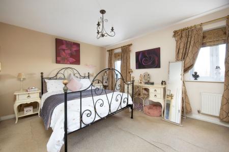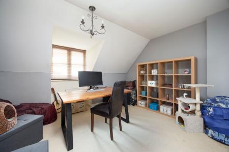 Stairs to the first floor give access to the master bedroom, bedroom four (currently used as a ‘work from home’ office) and the family bathroom with bath and overhead shower. The master bedroom enjoys views over the rear garden and benefits from an ensuite shower room. Stairs to the second floor give access to two further bedrooms both of which have ample space for a double bed and one with an ensuite shower