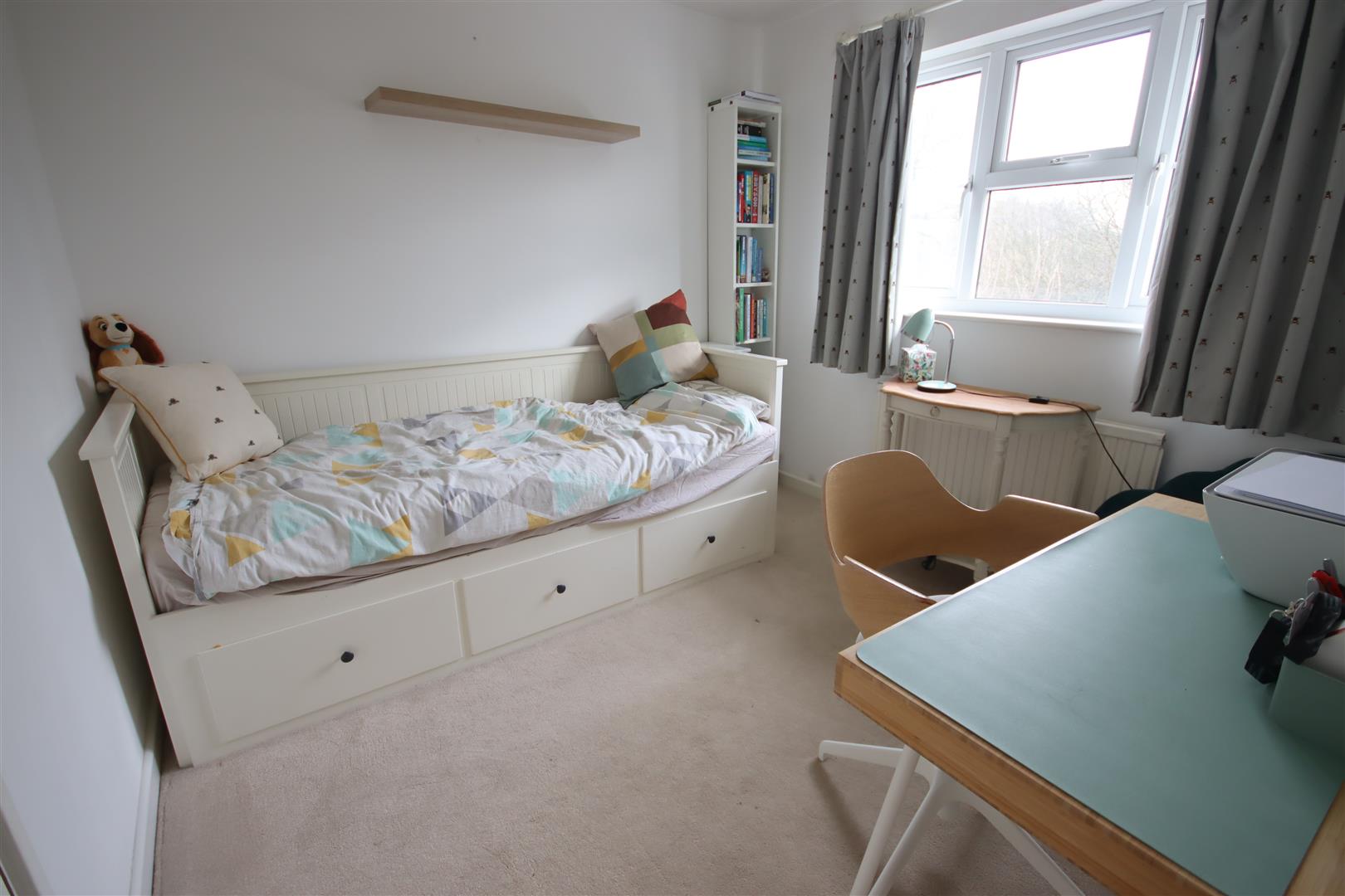 Bedroom Three - Double glazed window to front. Over stair storage cupboard. Radiator.