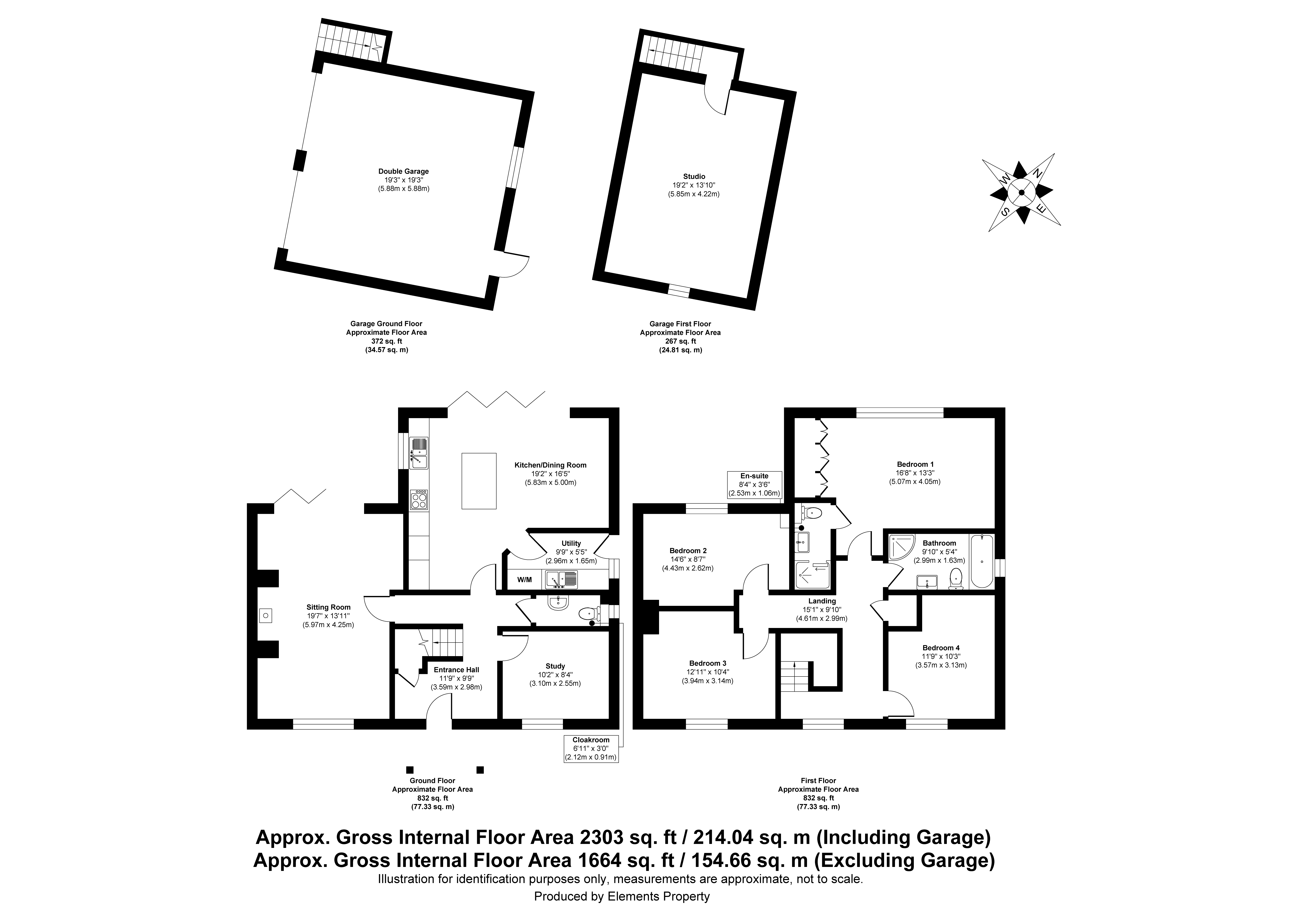 - Double garage with studio above