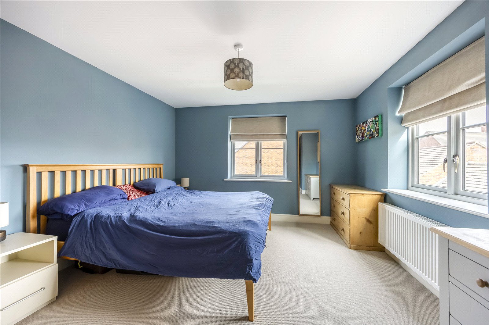 To the first floor, a central landing with both airing and linen cupboards provides access to four well-sized bedrooms. The family bathroom serves bedrooms three and four, while the two principal double bedrooms both benefit from built-in wardrobes and en suite shower rooms, offering excellent storage and convenience.