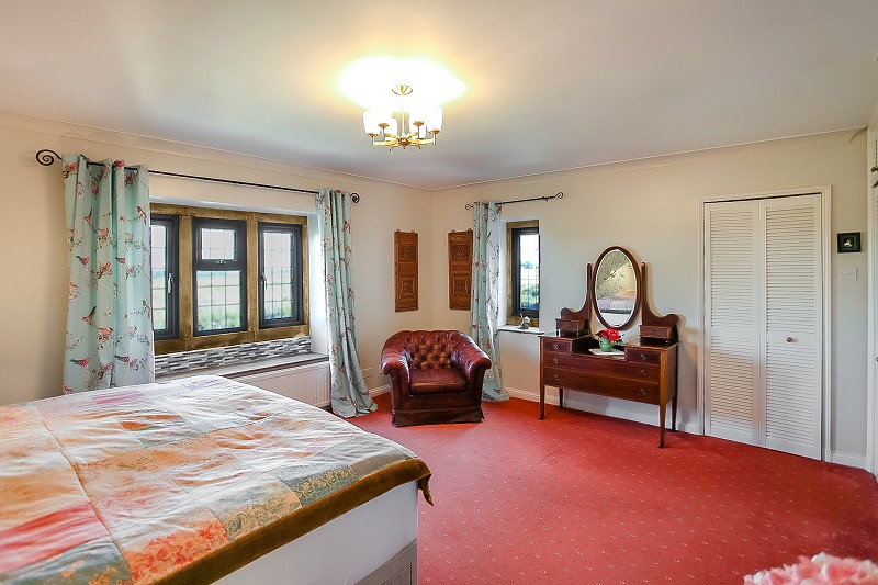 With two double built-in wardrobes, open shelf section to one side and five high level cupboards, dormer window with open outlook over countryside.