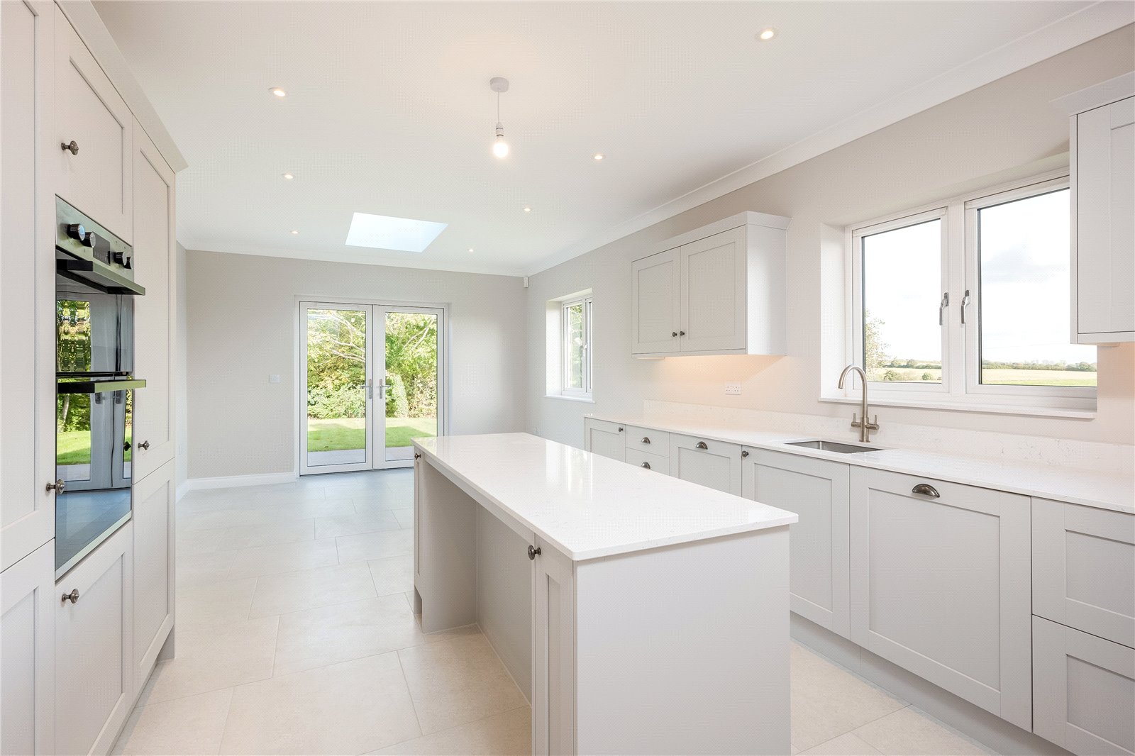 Kitchen/Dining/Family Room Fitted with a range of mounted wall and base units with quartz worksurface and splash backs. Range of integrated appliances including a LAMONA induction electric hob with extractor fan above, double oven, full length fridge/freezer and a dishwasher. Tiled floor, double glazed French doors to rear garden. Two double glazed windows to side aspect with countryside views.