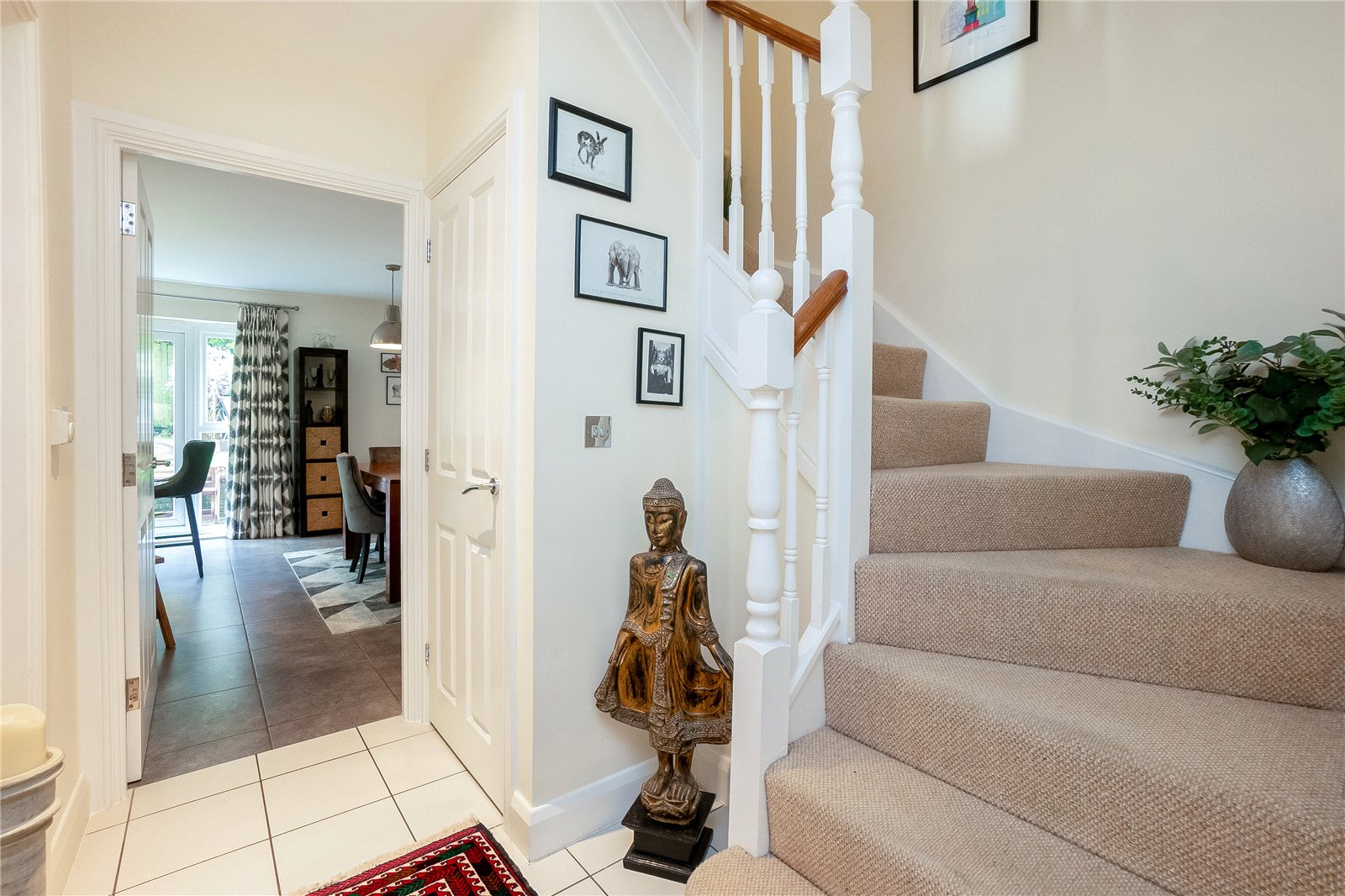 Entrance Hallway: Stairs to first floor, tiled floor, cloaks cupboard.