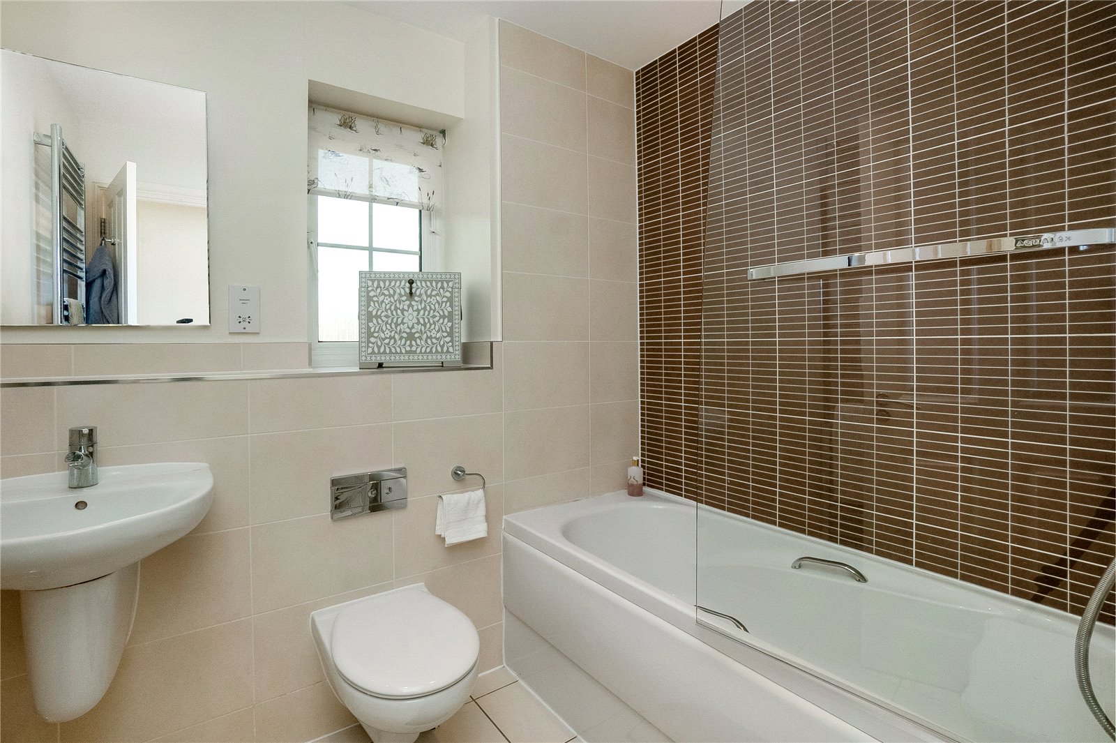 Bathroom: Comprising of panelled bath, low level W.C, hand wash basin, heated towel rail, double glazed window to front aspect.