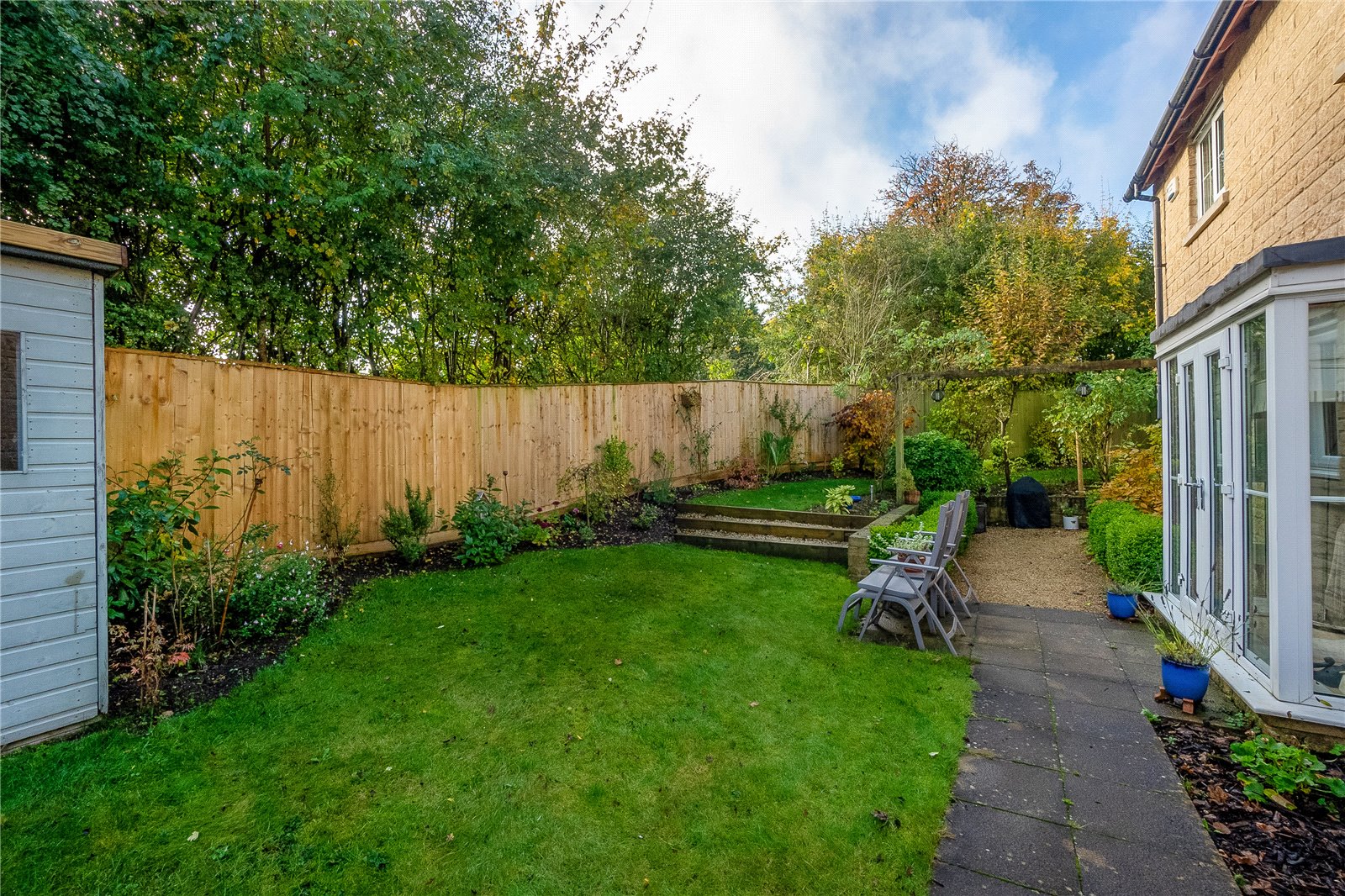Enclosed rear garden, predominately laid to lawn, with mature borders, has a sunny south facing aspect and is completely enclosed by panelled fencing. Attached integral single garage with electric up and over door and off street parking for two cars.