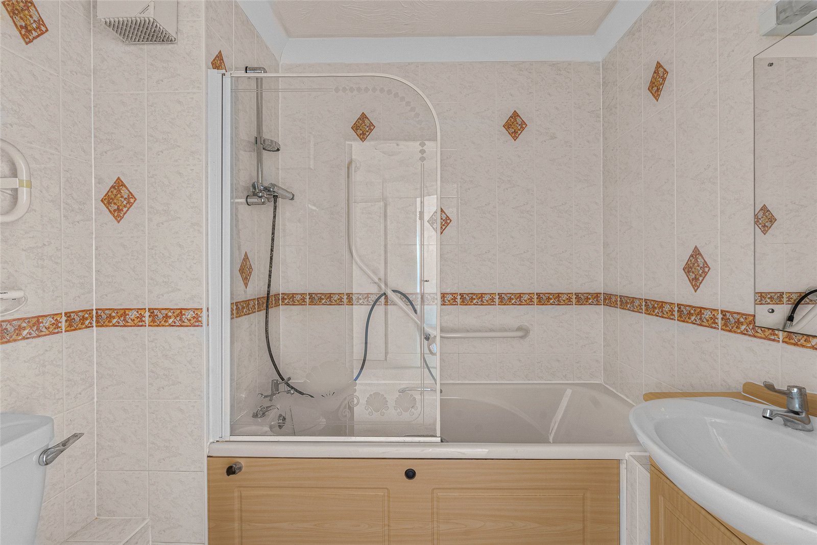 Bathroom: Panelled bath hand wash basin, low level WC.