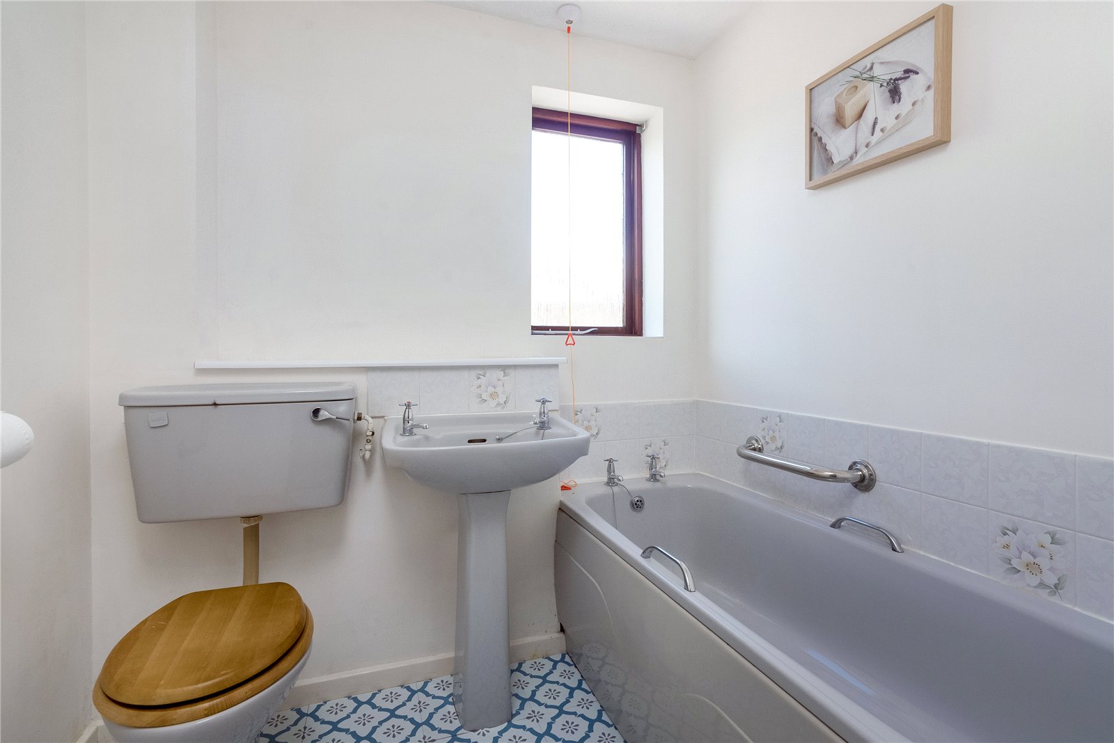 Bathroom Comprising Panelled Bath of Coloured Suite with Pedestal Hand Wash Basin. Low Level WC. Part Tiled Walls. Double Glazed Window to Side Aspect.