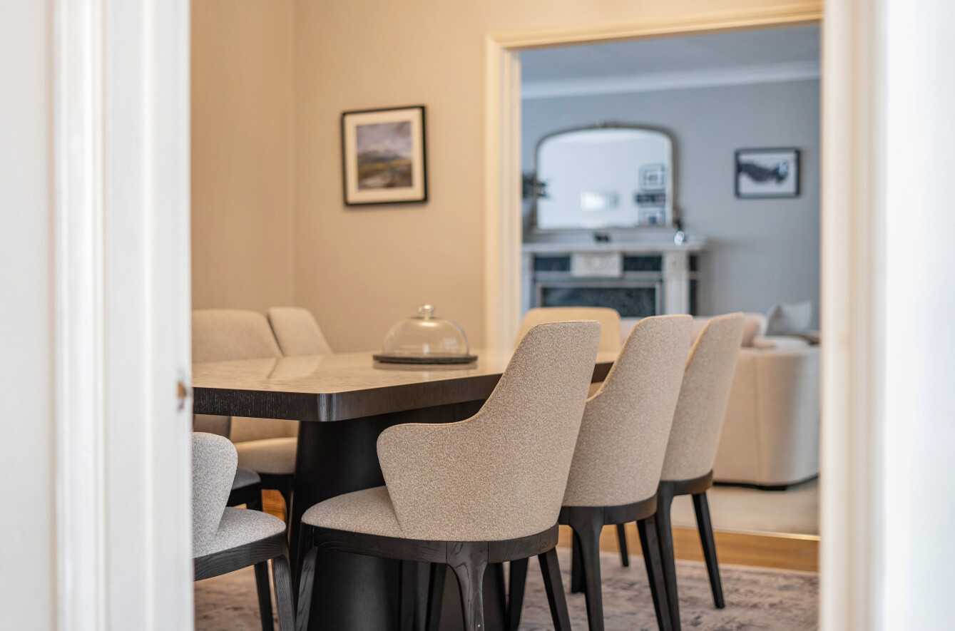 The main reception room extends to an impressive 373 sq ft and features plush carpeting, a bay window to the front and a striking marble fireplace. Double doors lead through to a dining room with wood flooring, while a further reception room spans the rear of the property, creating a superb, interconnected living and entertaining space with direct access to the garden. A final reception room to the front offers flexibility for use as a study, playroom or ground-floor guest bedroom.