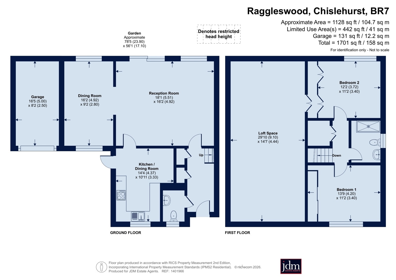 Both double bedrooms are to the first floor, each featuring a wall of built-in wardrobes. There is also a large airing cupboard and access to a 435 sq ft loft via the second bedroom.