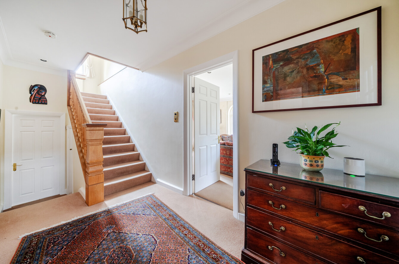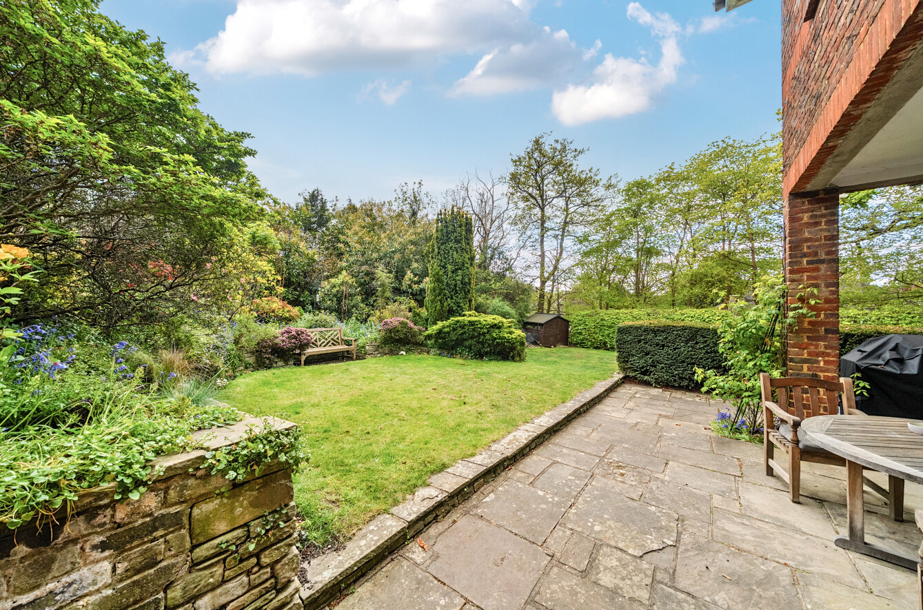 The beautiful rear garden wraps around the back of the house in an 'L'shape and is comprehensively planted with mature shrubs, trees and hedging, and features a large expanse of lawn together with a small pond and a partially covered terrace. Extending to approximately 0.318 acres, the plot offers considerable potential to extend the property or further develop the site, subject to the necessary planning permissions.