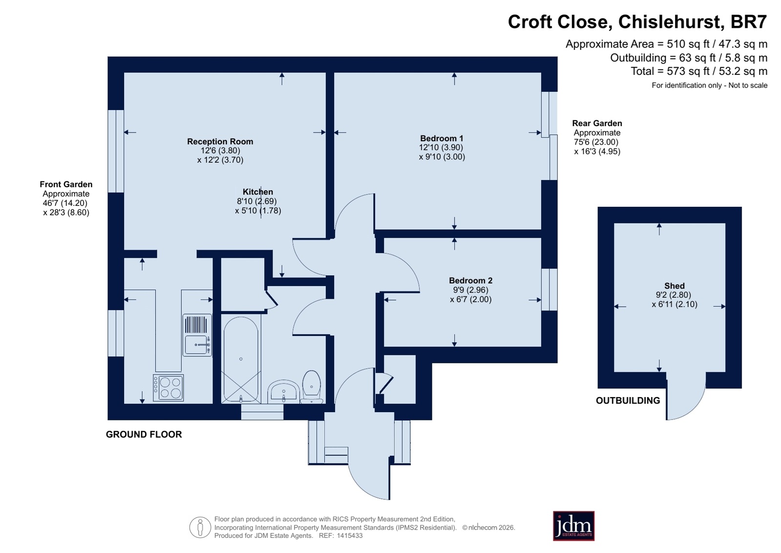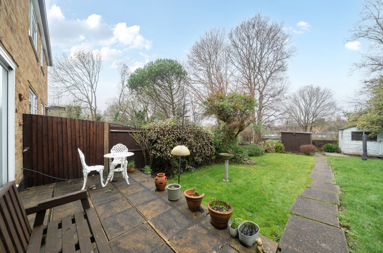Externally, the private rear garden extends to approximately 75 ft and features a patio area, central lawn with planted borders, a good-sized storage shed and access to a garage en bloc.