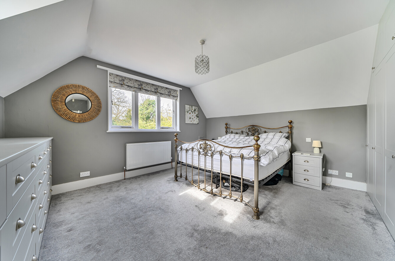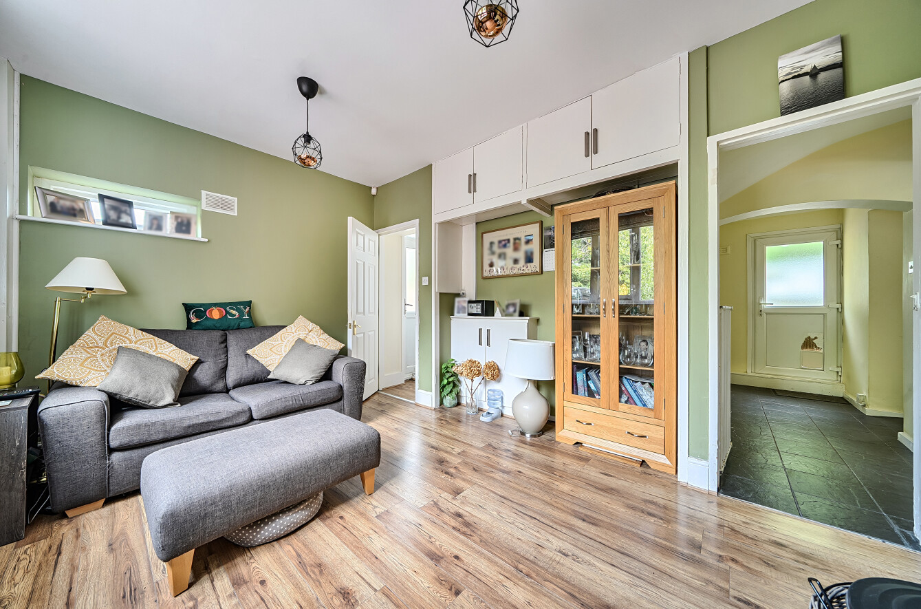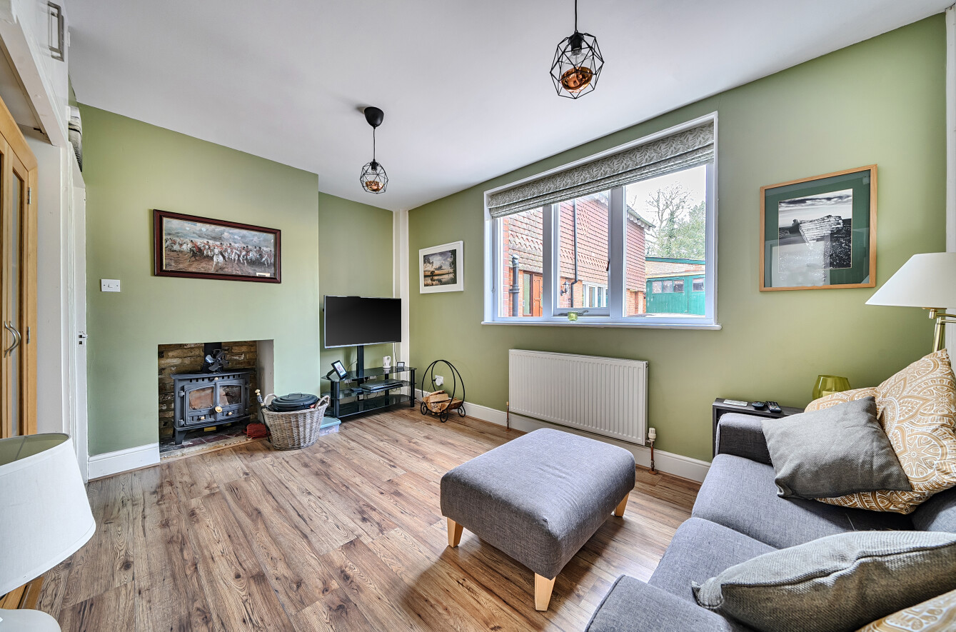 The principal reception room measures approximately 274 sq ft and is centred around a log-burning fireplace with decorative corbels above. This space flows seamlessly into the conservatory dining room, offering beautiful views across the garden.