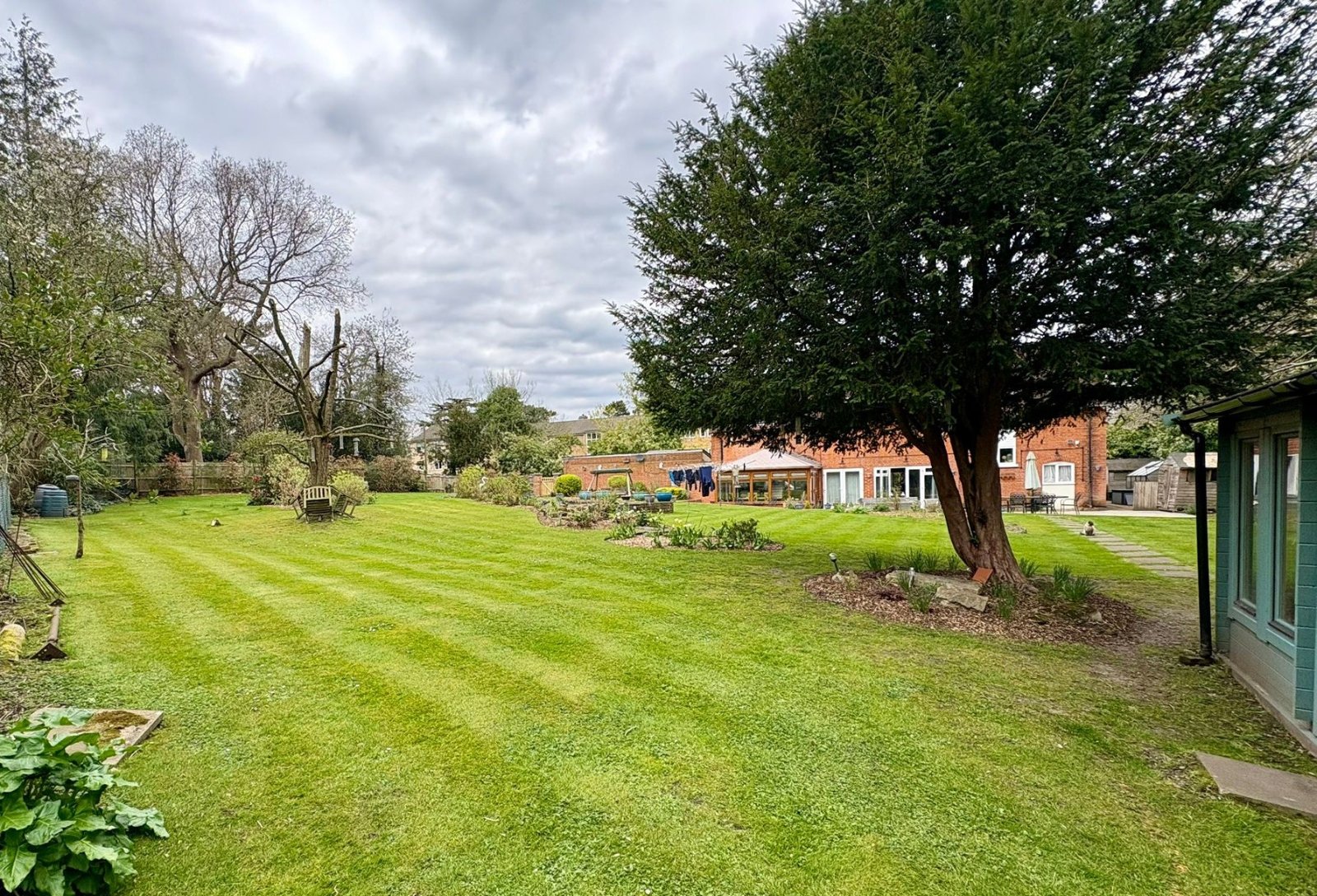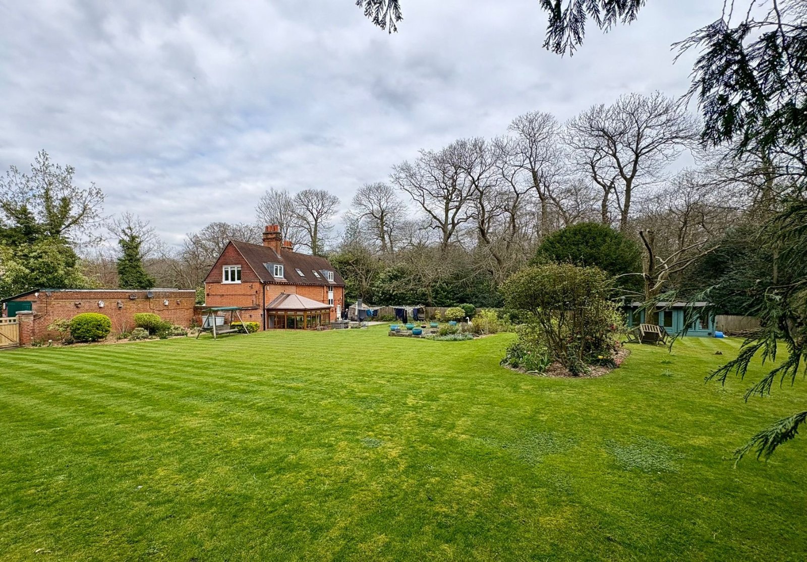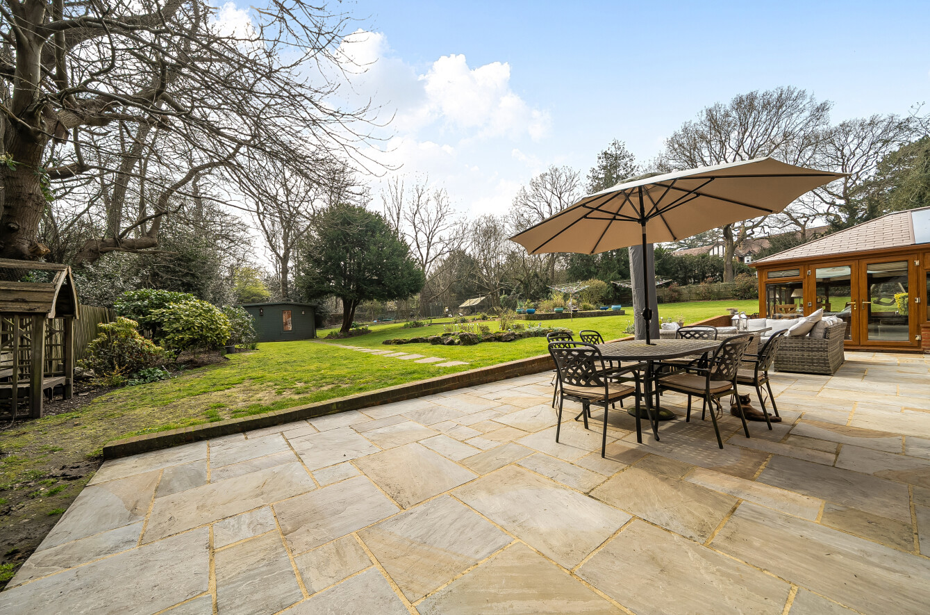 The grounds are a standout feature of this unique home, extending to approximately 0.3 acres at the front, 0.4 acres of beautifully maintained rear garden, and approximately 3 acres of private Green Belt woodland. The rear garden includes a substantial Yorkstone patio, sheds, and a summer house currently used as a home office, creating an exceptional blend of lifestyle and nature.