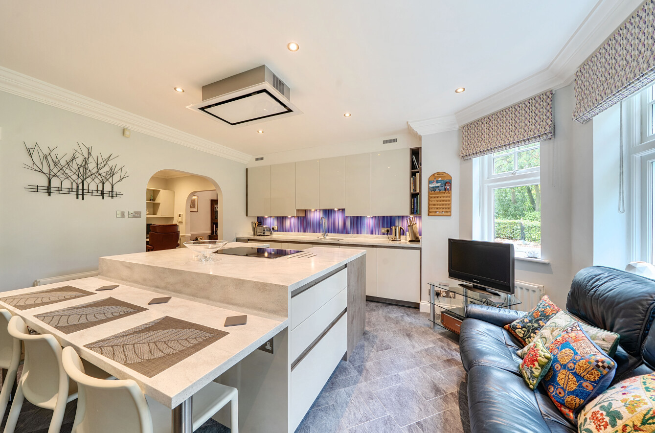 The apartment is situated on the ground floor and immediately on entry you will appreciate the beautiful presentation. Standout features, which mostly run through the apartment include plush carpet, dado rails, ornate cornicing and detailed skirting boards. The hallway provides a built-in storage cupboard along with a convenient desk/office nook, and an open-plan layout seamlessly connects to the sitting room and kitchen.