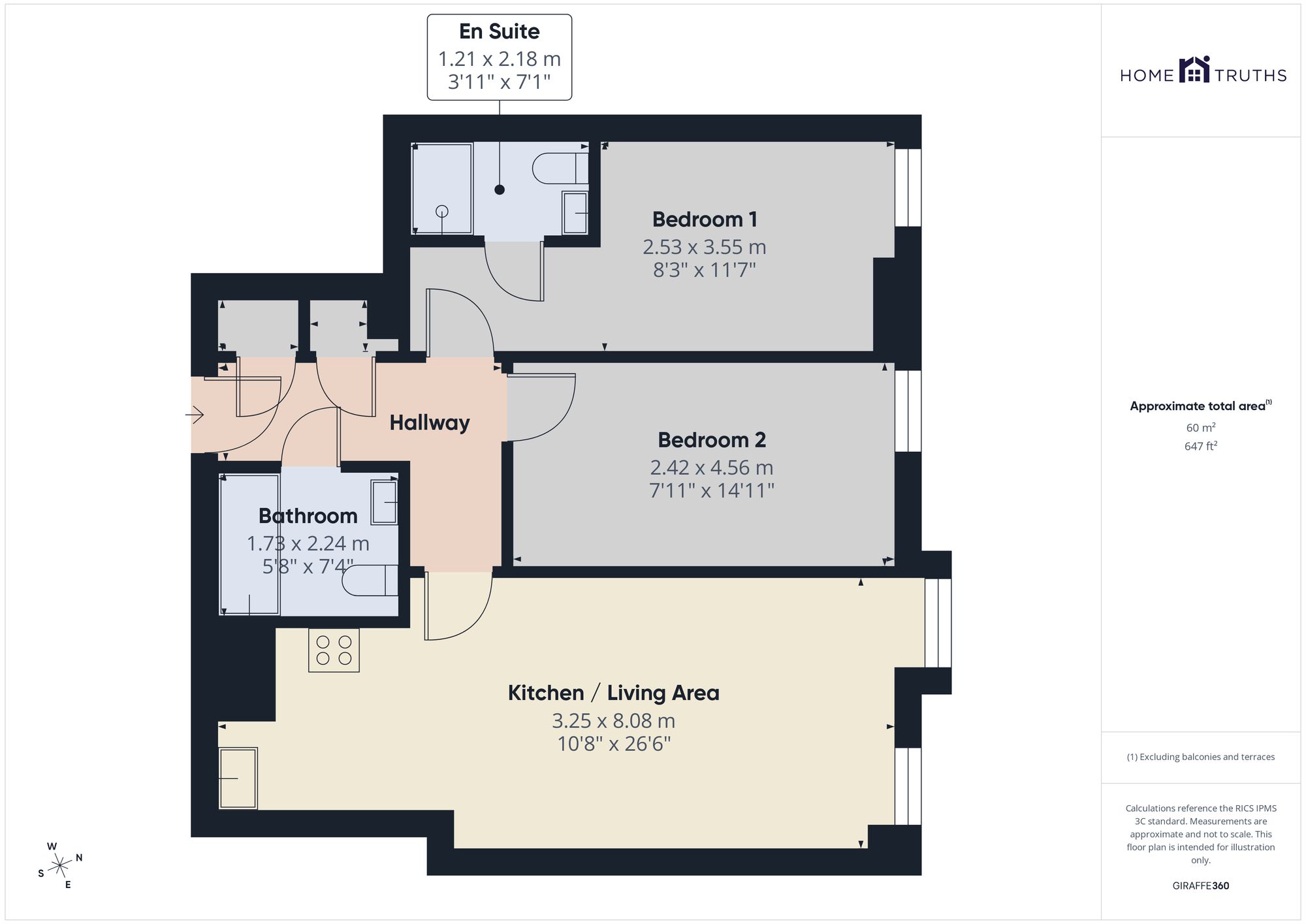 Bedroom one benefits from en suite comprising mixer shower in cubicle, wc, wash hand basin on vanity and ladder heated towel rail. Bedroom two is equally spacious and the main bathroom comprises a bath with screen and mixer shower over, wc, wash hand basin and ladder heated towel rail.