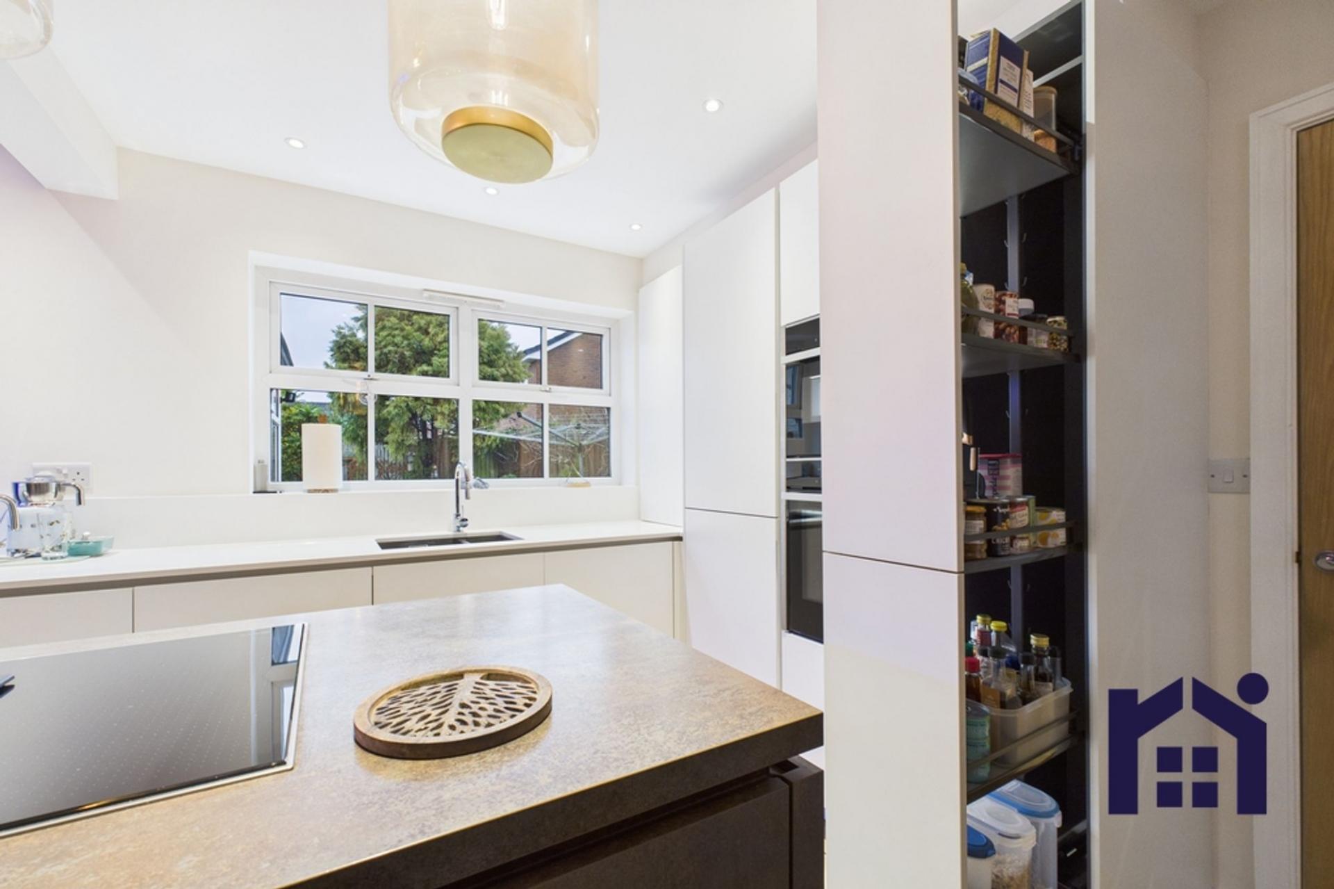 Double doors open to the spacious living room with bay window and feature, remote controlled electric fire. The heart of the home has plenty of room for both dining and comfortable furniture with the Alno kitchen comprising a range of wall and base units with central island, quartz work surface and drainer, induction hob with downdraft extractor & double electric oven and grill by Neff, refrigerator and freezer. A separate utility room offers more storage and space, power & plumbing for additional appliances.