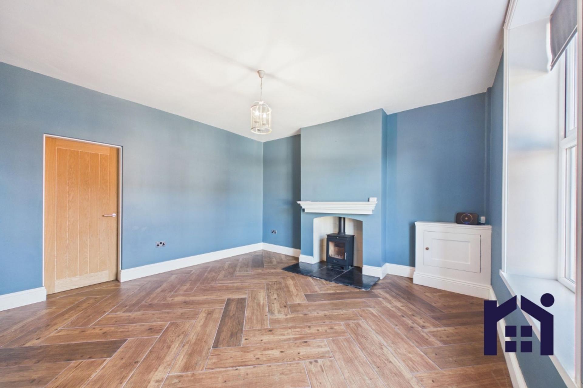 Step into the welcoming hallway, leading through to a generous lounge featuring wood style tile flooring and a wood-burning stove.