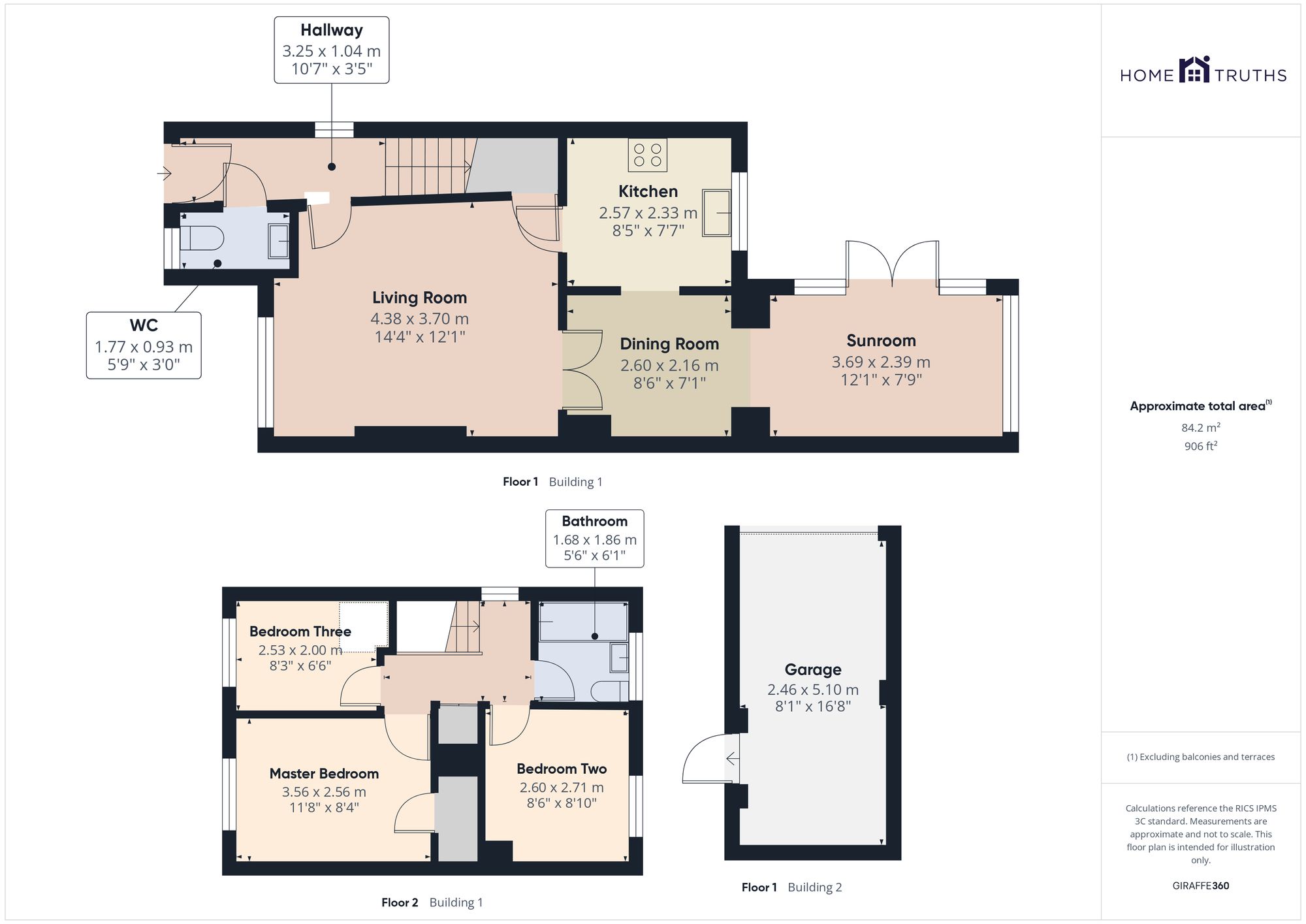 To the rear, the beautifully neutral kitchen overlooks the garden and is fitted with an integrated oven, space for a fridge and washing machine, and a breakfast bar providing an informal dining area. The kitchen flows seamlessly into a wonderfully bright sun room, creating an additional reception space perfect for relaxing or entertaining. A convenient downstairs wc with wash hand basin completes the ground floor.