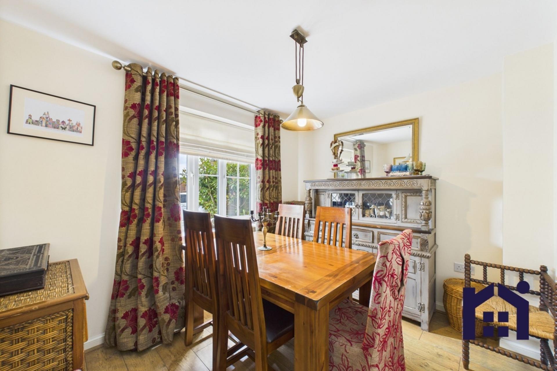 Set back behind mature beech hedging a pathway leads through the garden to the main entrance. Step into the welcoming hallway with cloakroom off comprising wc and wash hand basin. To the right, the living room runs the full depth of the property with patio doors opening to the garden. To the left is the separate dining room with the dining kitchen to the rear comprising a range of wall and base units with gas hob, electric oven and grill, dishwasher, Ideal Logic central heating boiler and space, power and plumbing for additional appliances.