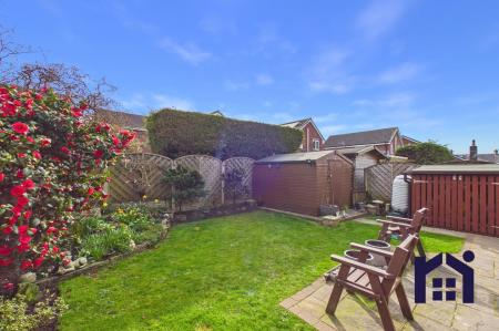 Outside, the private southwest facing rear garden enjoys a lawn bordered by mature planting, a sun terrace ideal for outdoor entertaining, and additional storage with sheds.