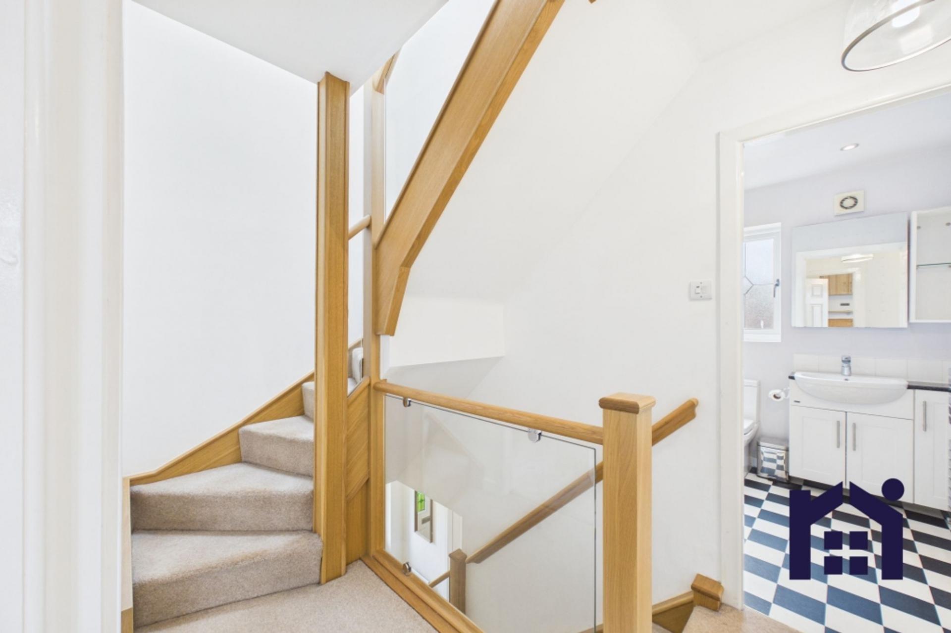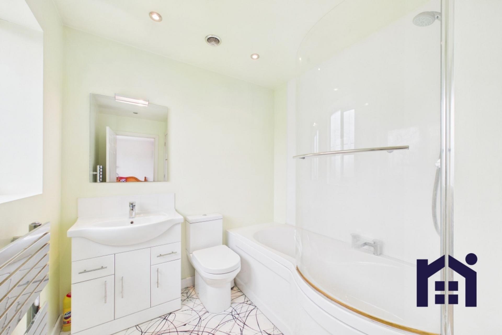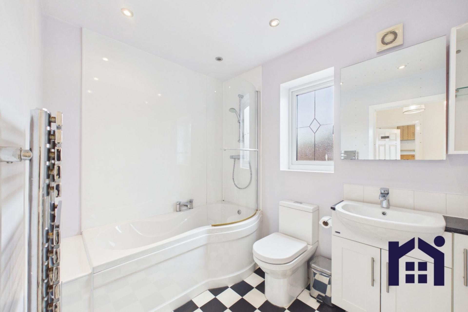 Back inside, stairs rise to the first floor landing. Bedroom two is a double with fitted wardrobes and en suite, comprising bath with screen and mixer shower over, wc, wash hand basin on vanity and ladder heated towel rail. A further double bedroom and a comfortable single (currently housing the Worcester combi boiler) are also located on this floor, along with the family bathroom featuring bath with screen and mixer shower over, wc, wash hand basin on vanity and ladder heated towel rail.